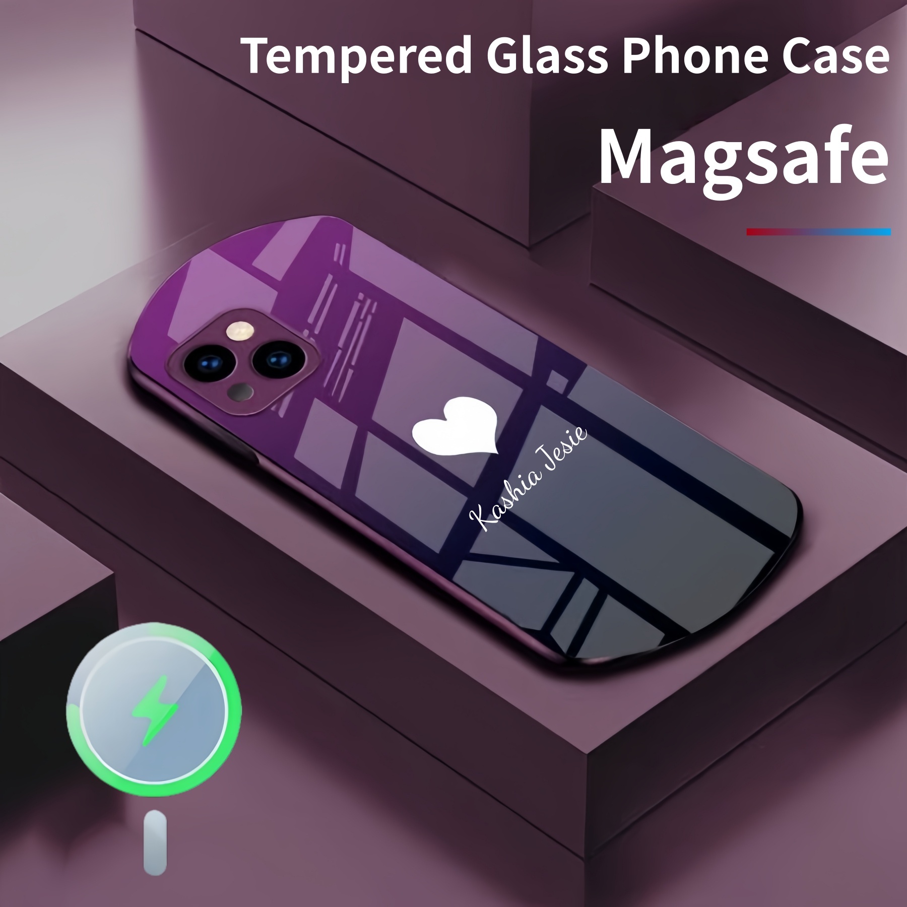 Personalized Love Heart Gradient Magsafe Tempered Glass Case