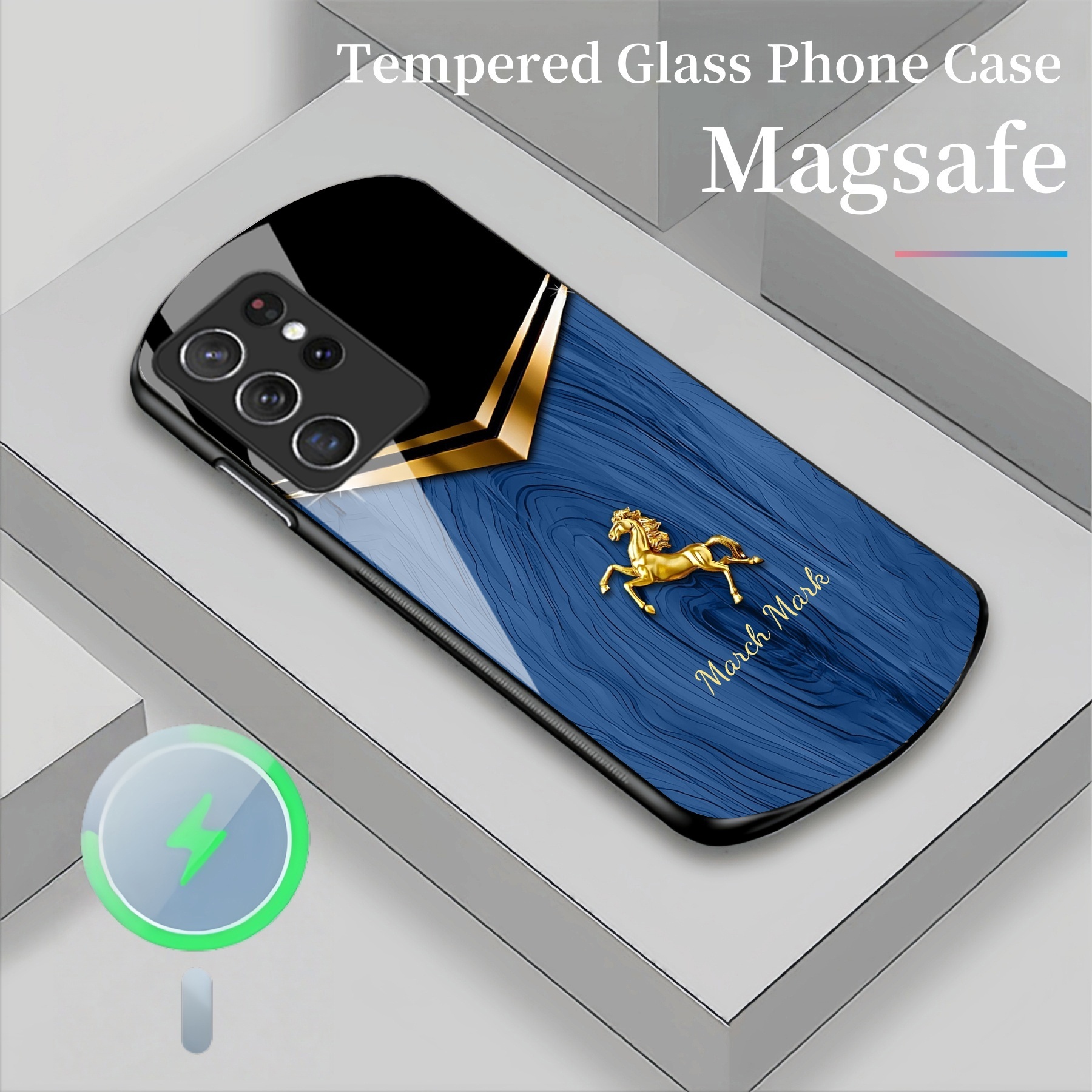 Personalized Wood Grain Horse Magsafe Tempered Glass Case