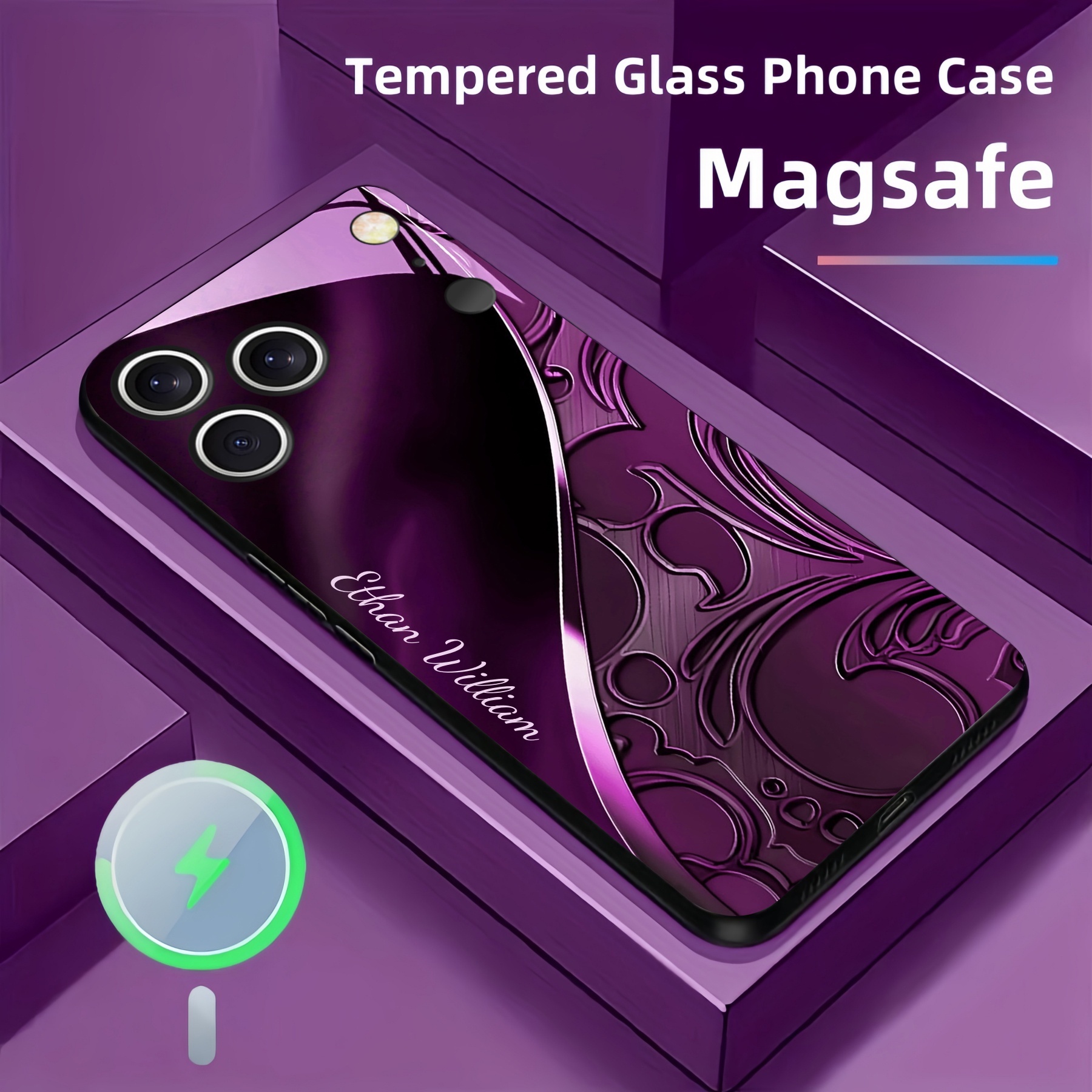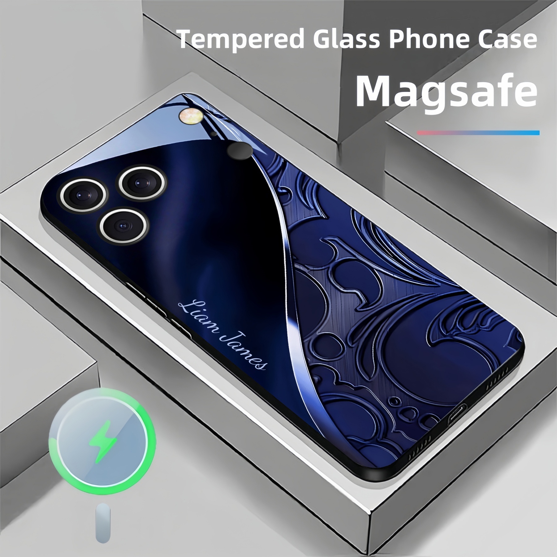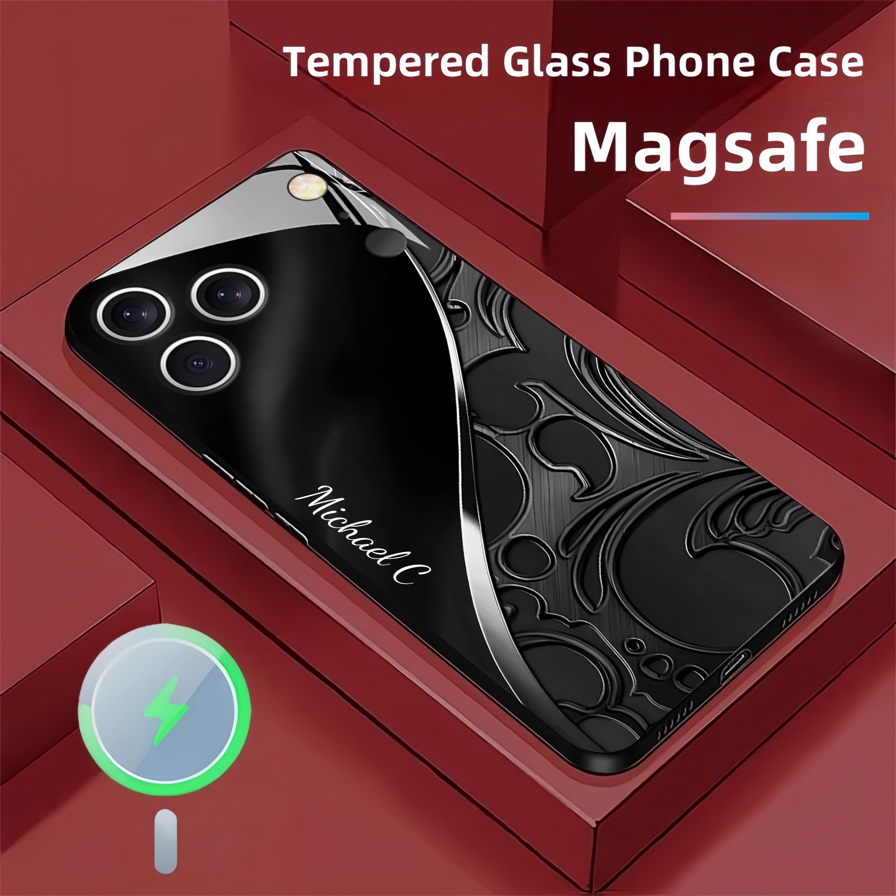 Personalized Baroque Swirl Magsafe Tempered Glass Case