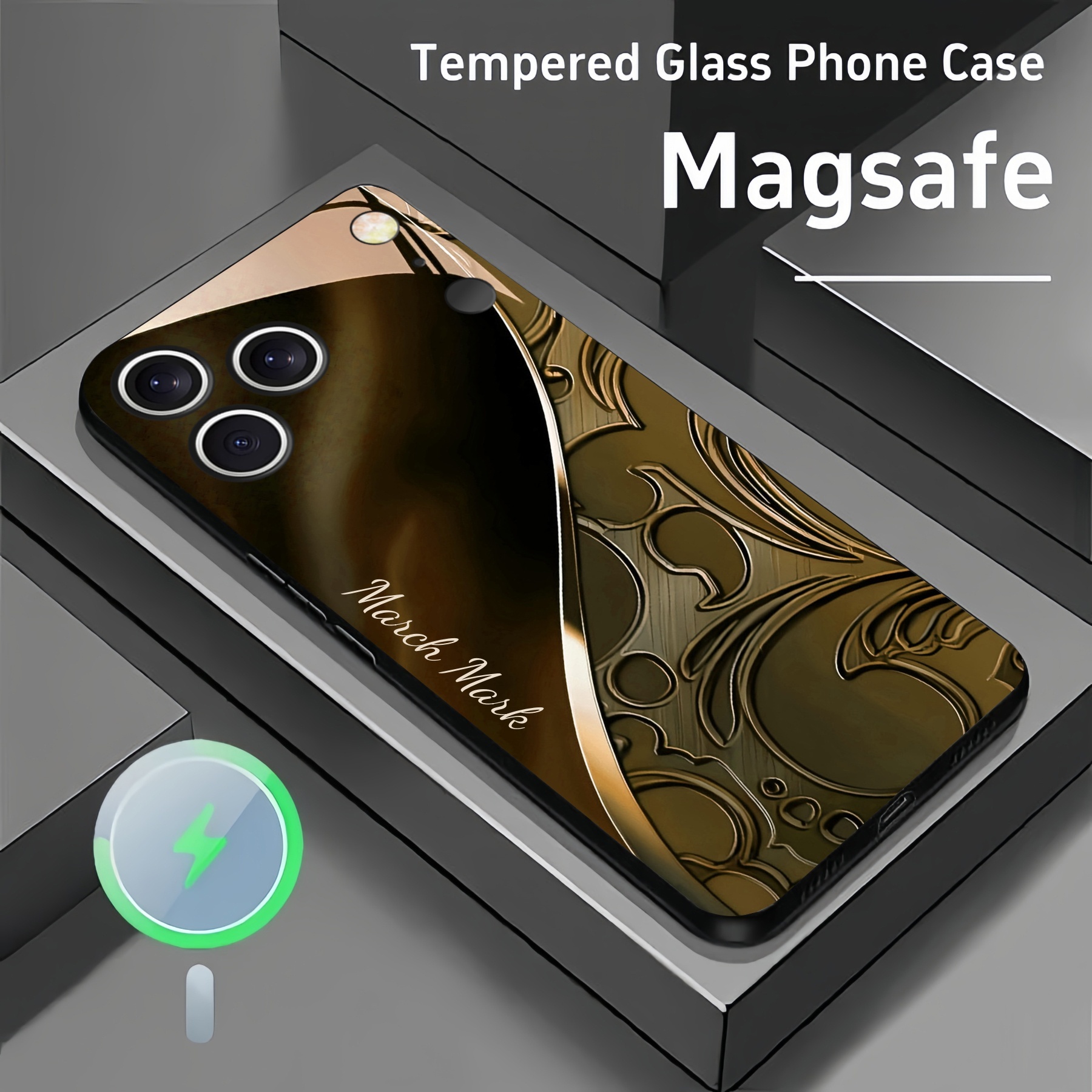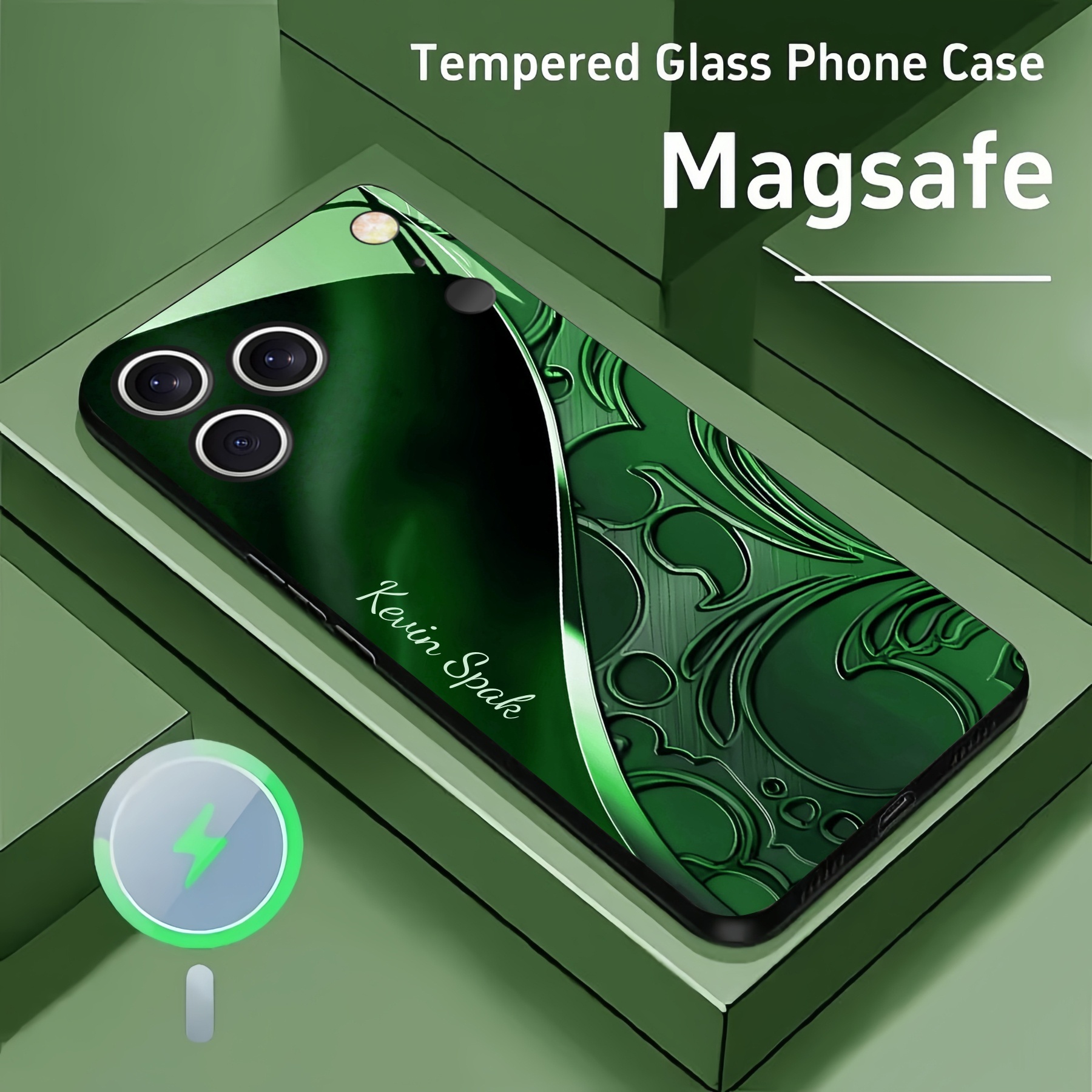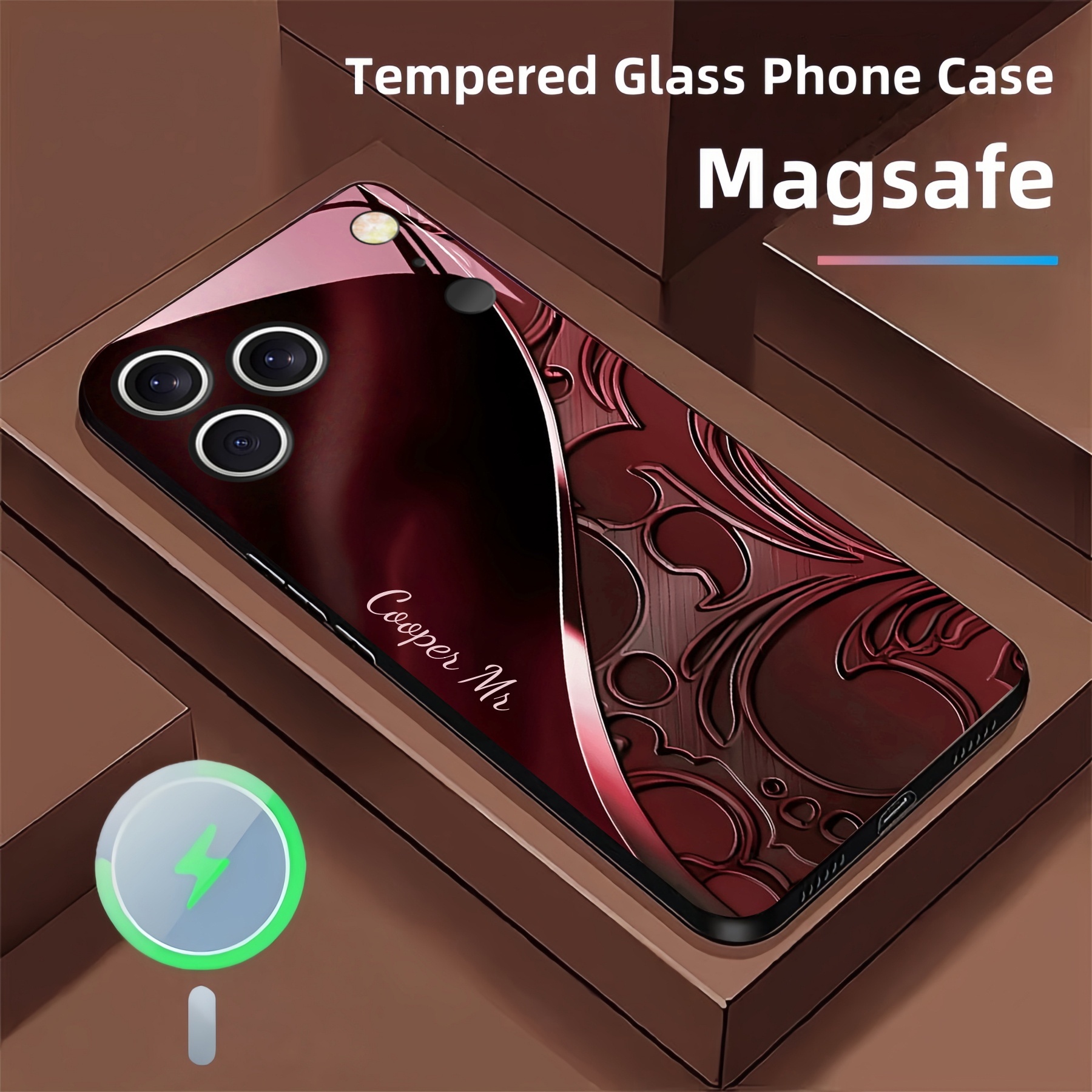 Personalized Baroque Swirl Magsafe Tempered Glass Case