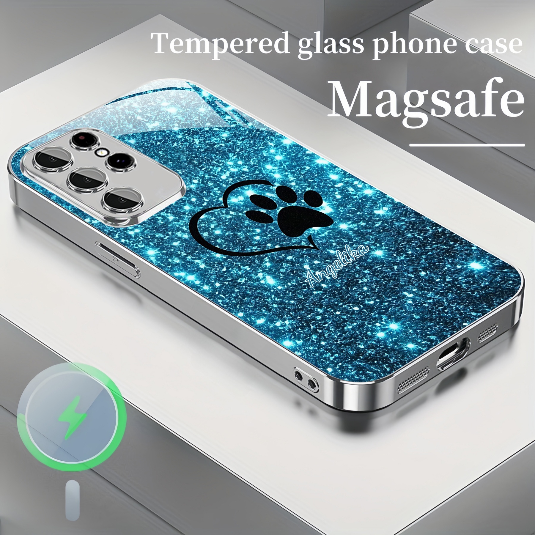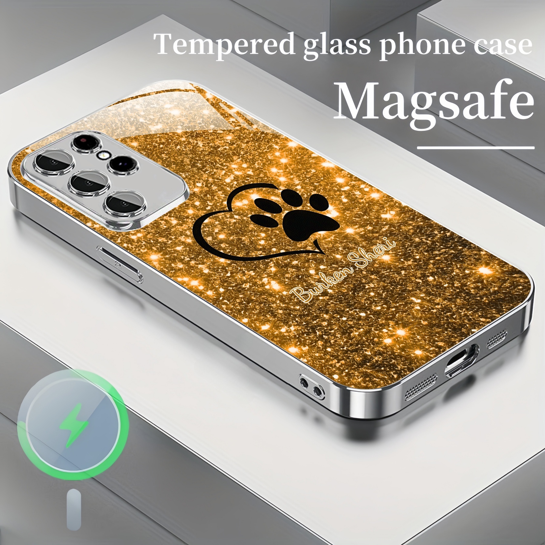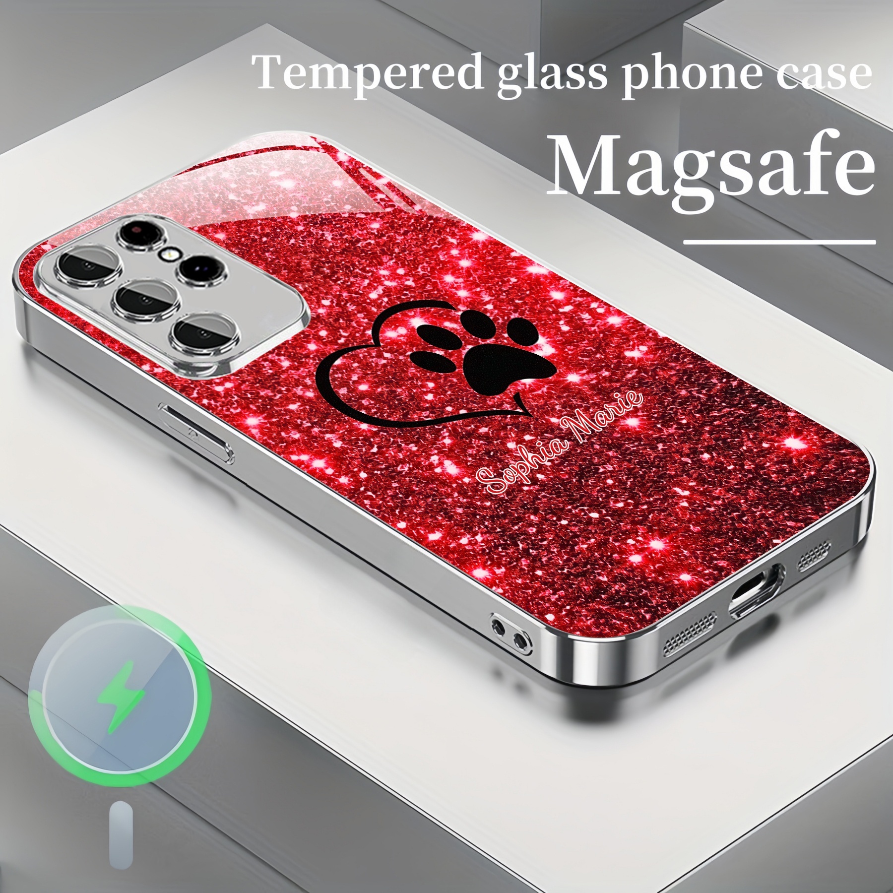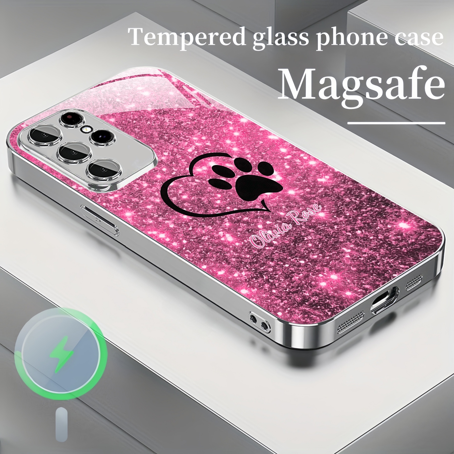 Personalized Hearts Paw Prints Magsafe Tempered Glass Plating Case