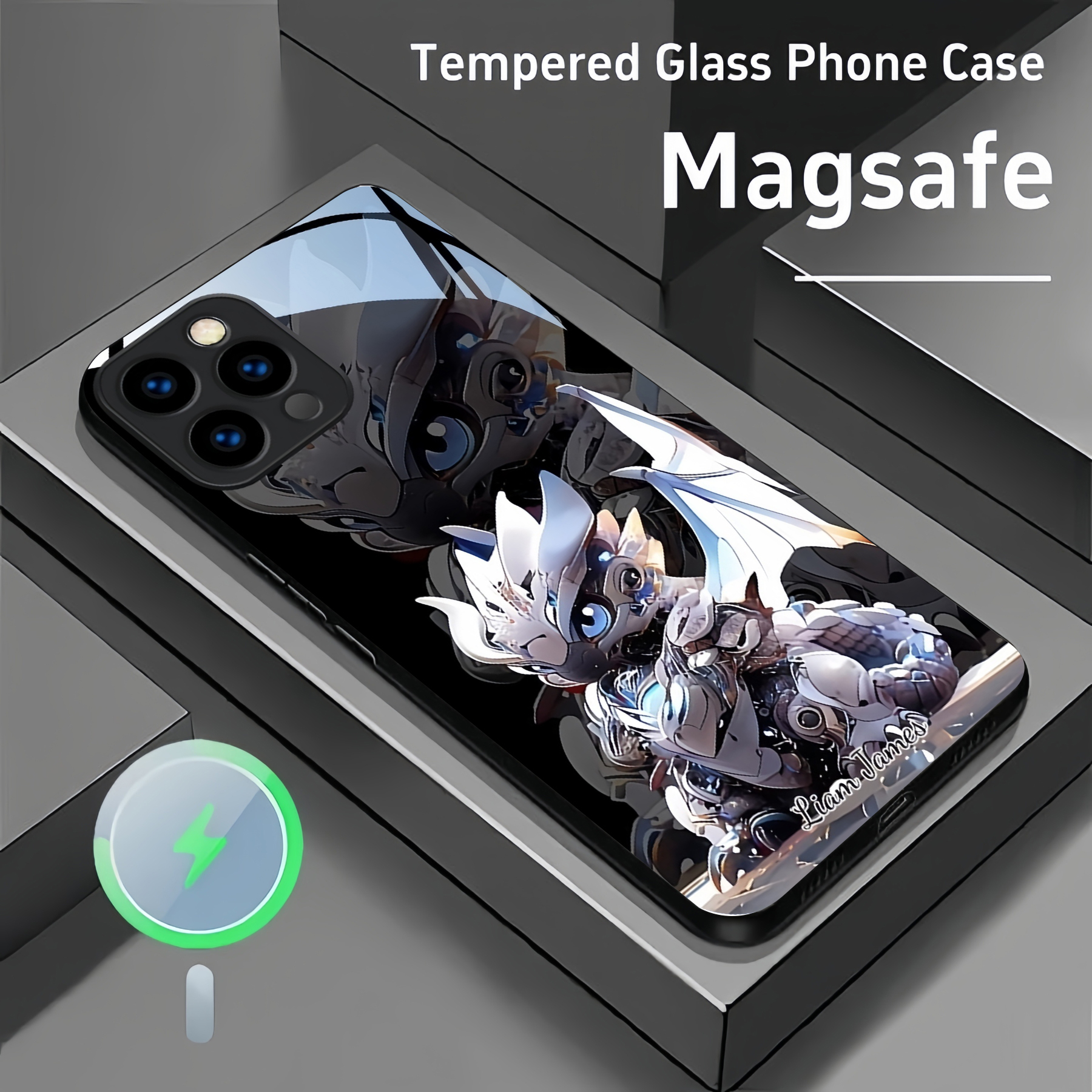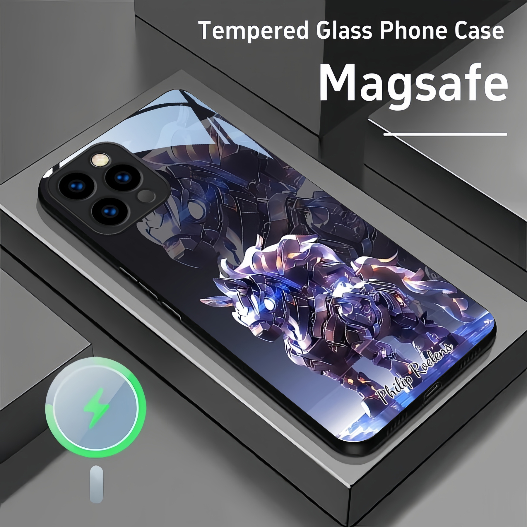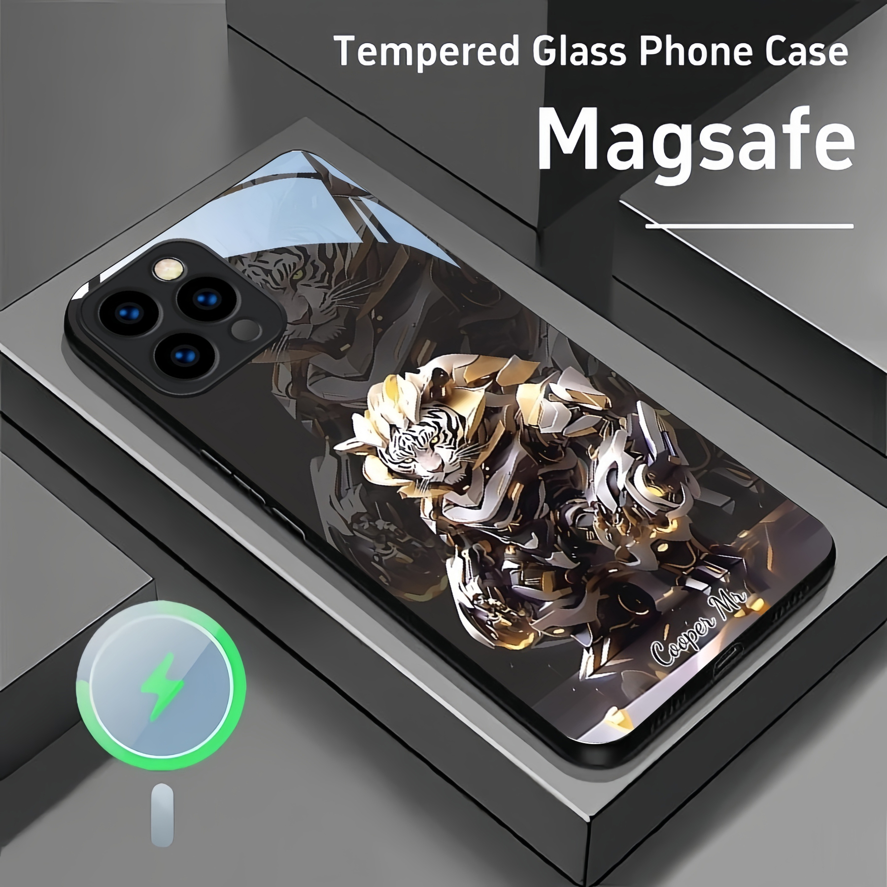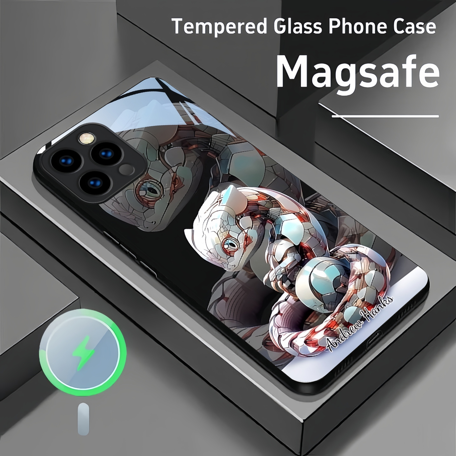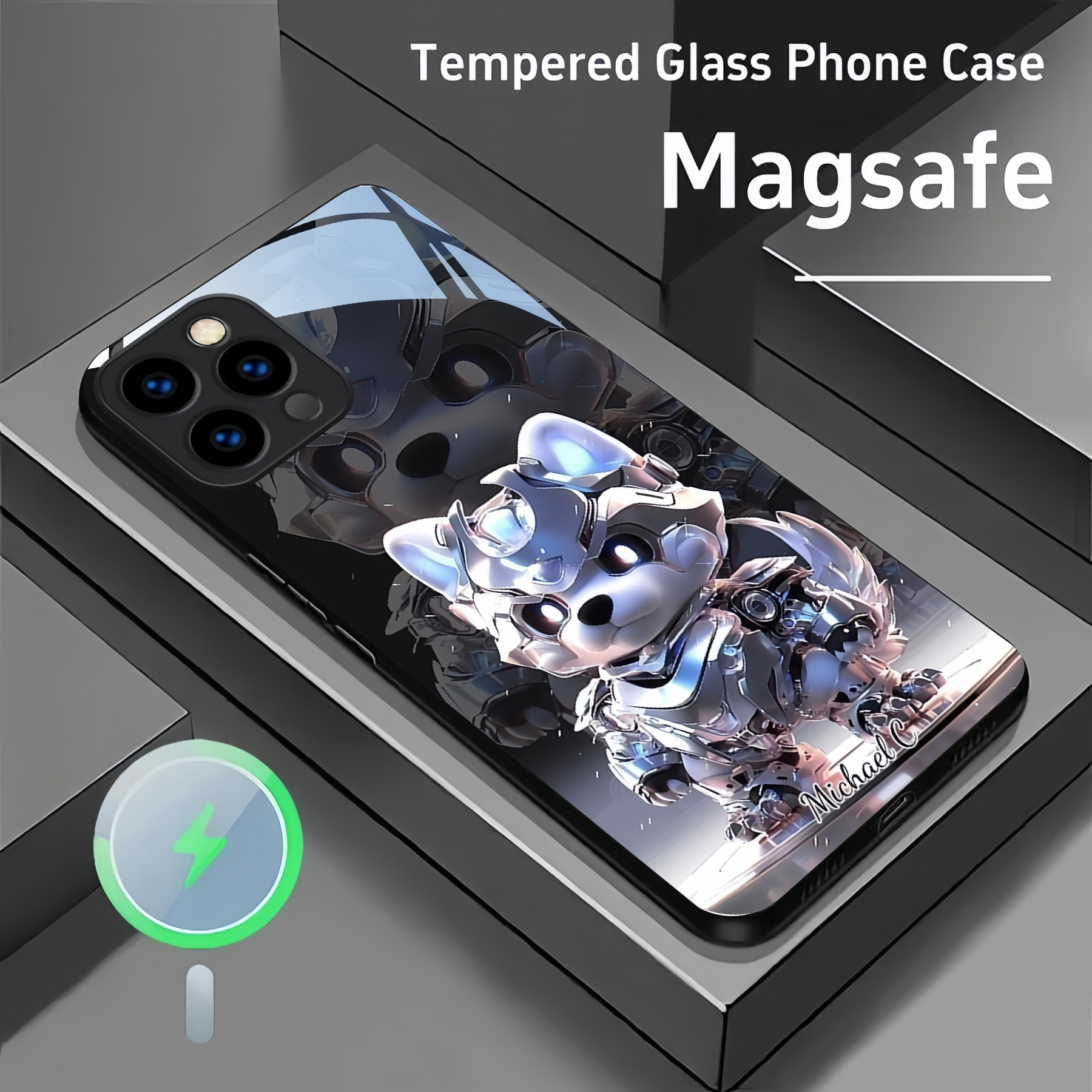 Personalized Mecha Animal Pattern Magsafe Tempered Glass Case