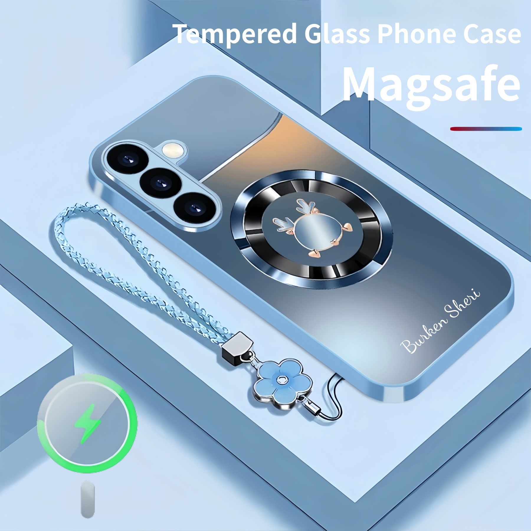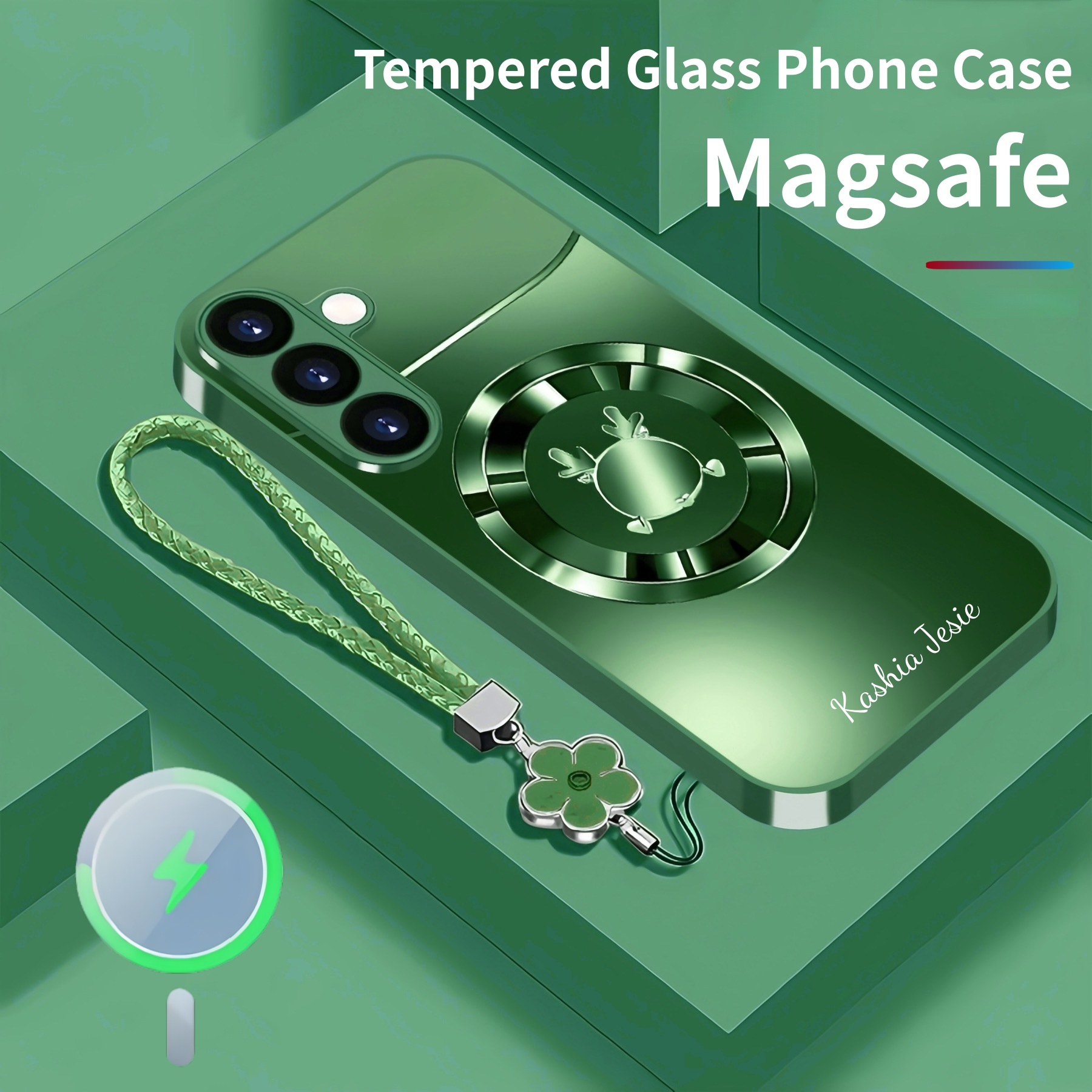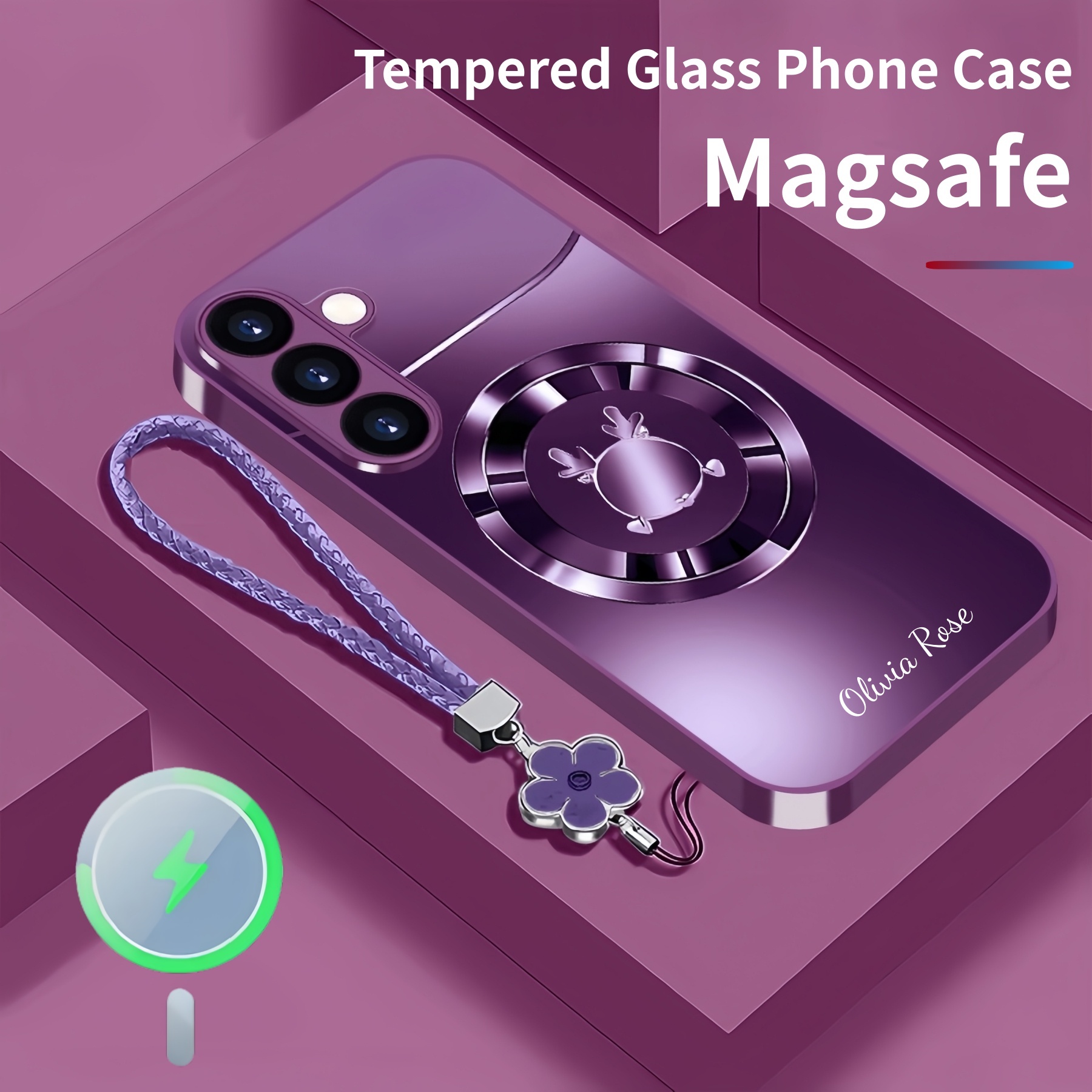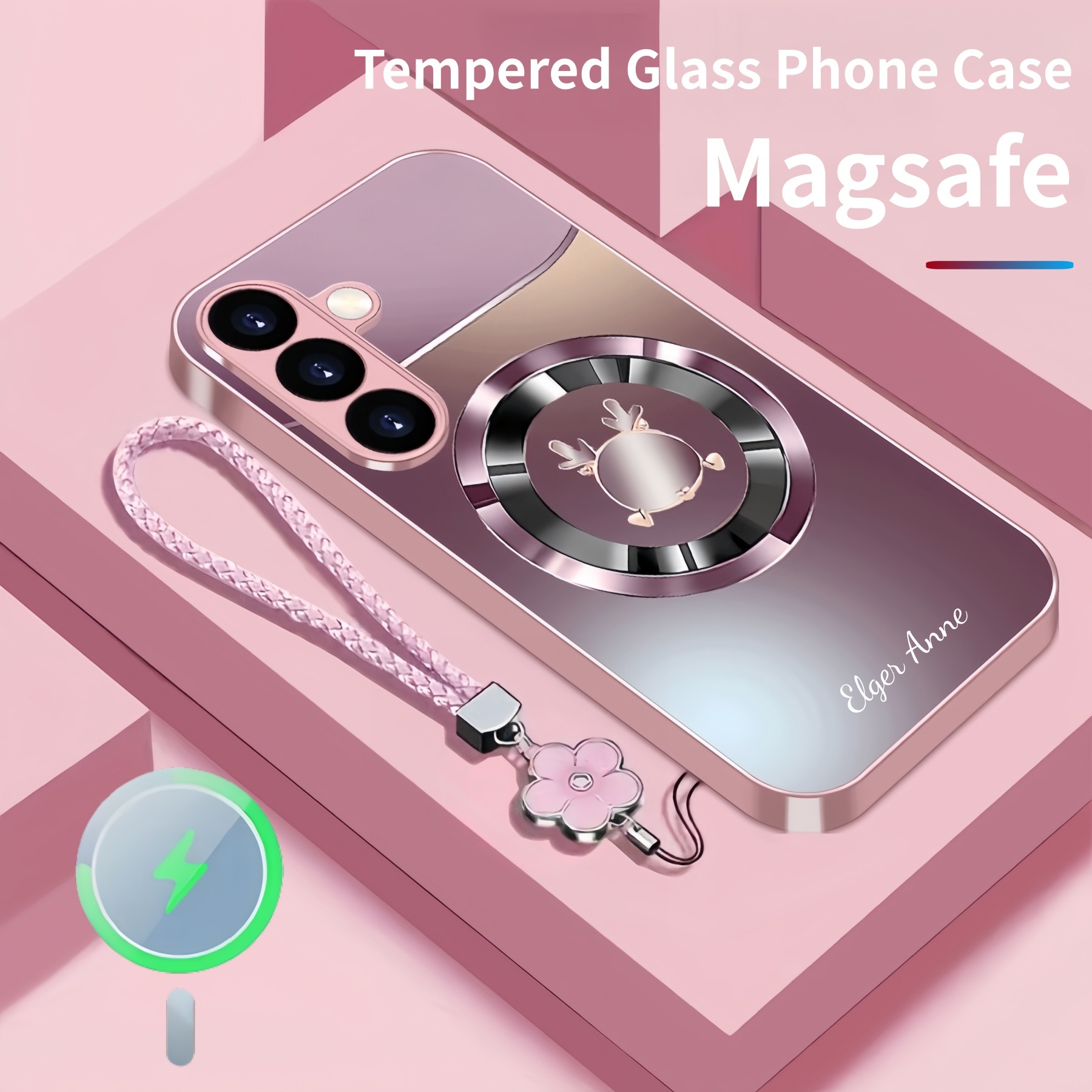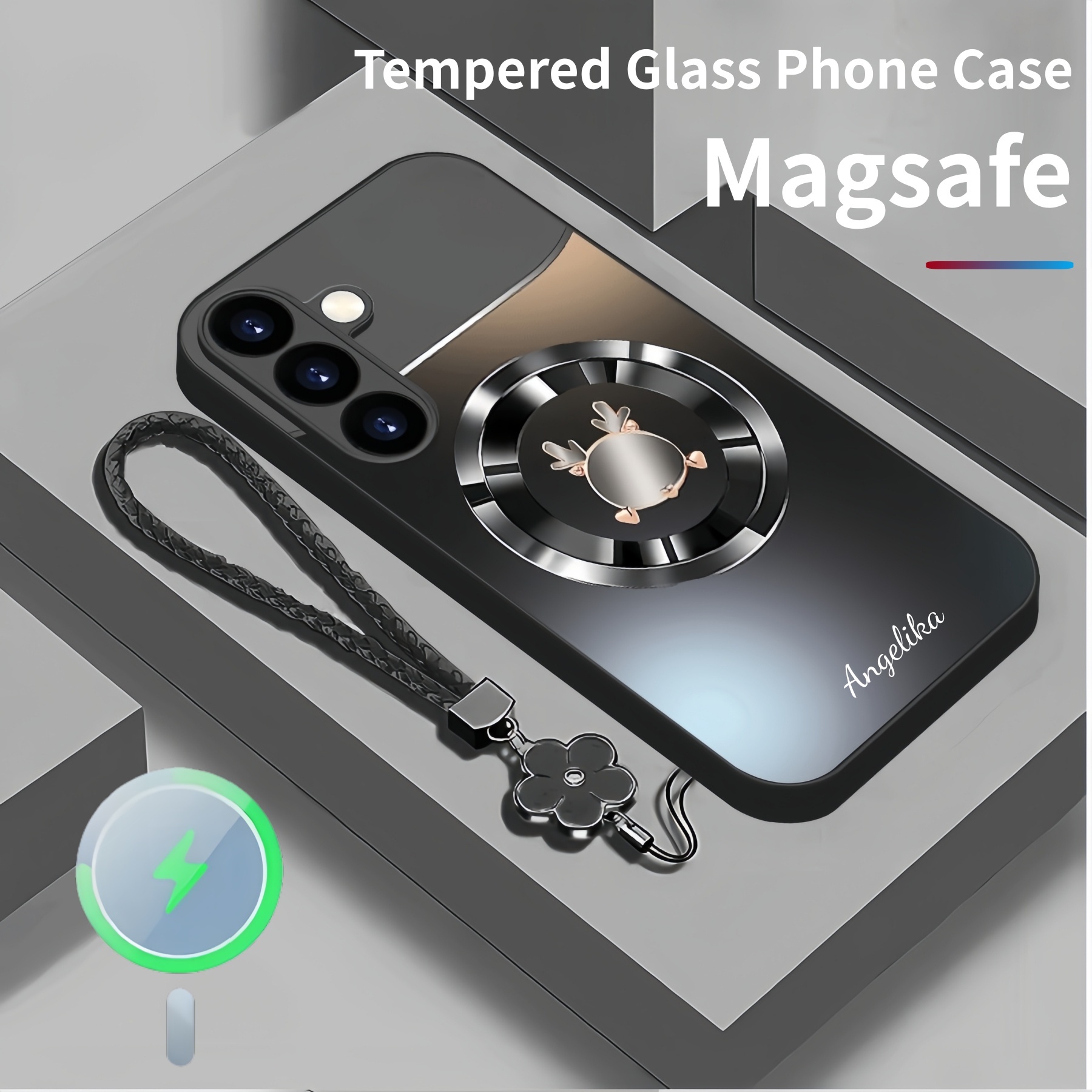 Personalized Cute Antlers Magsafe Tempered Glass Case with Lanyard