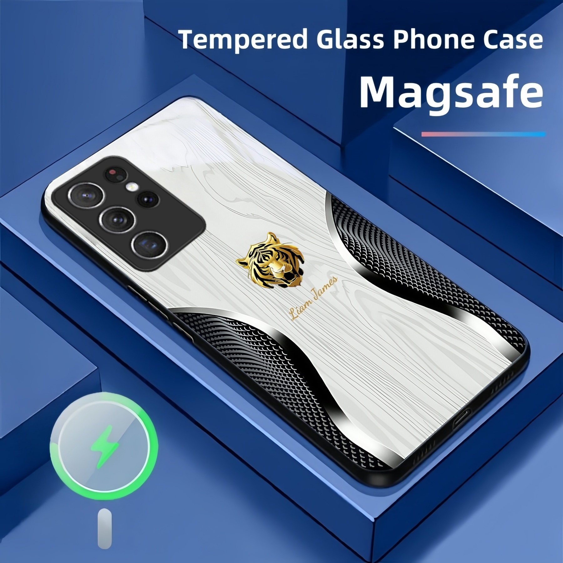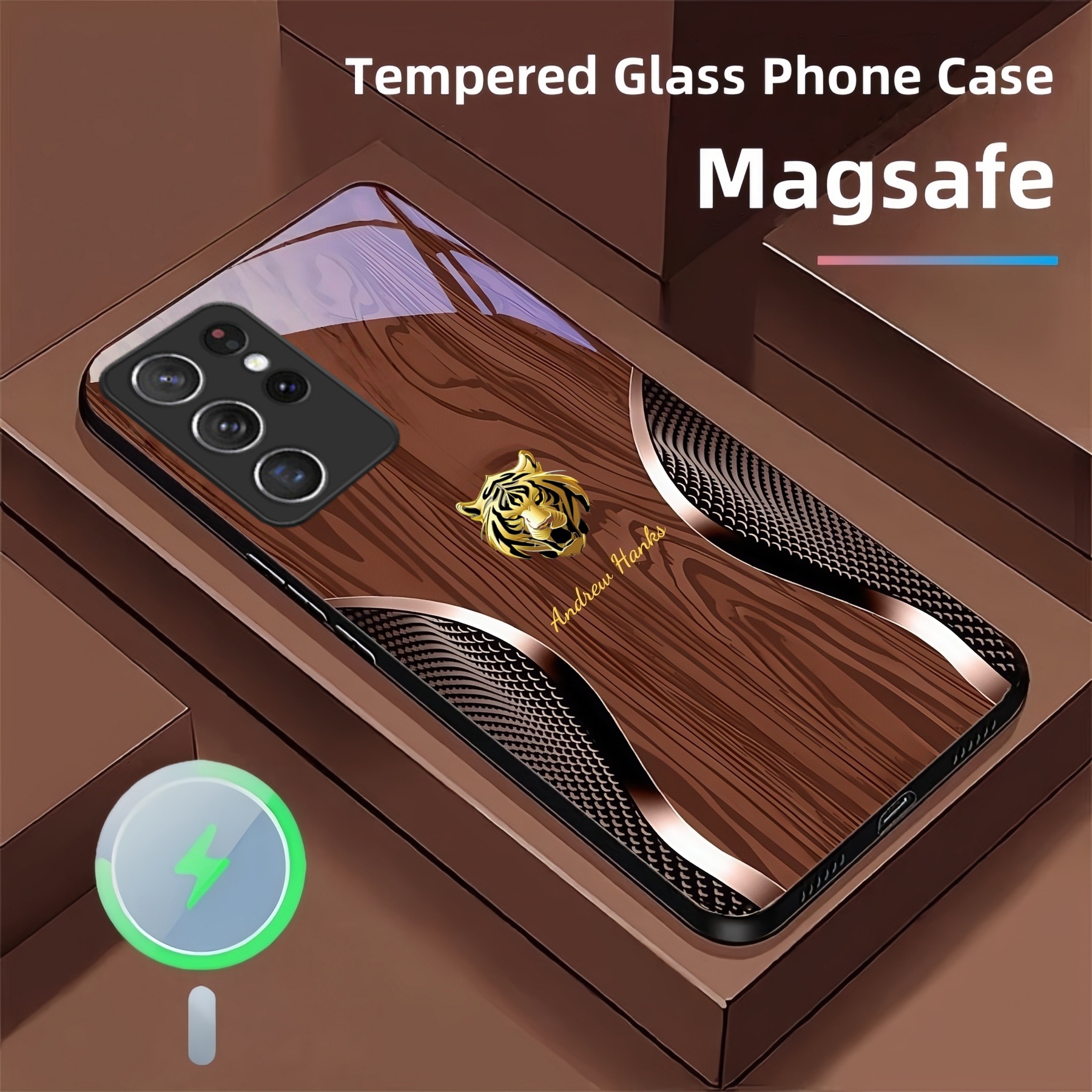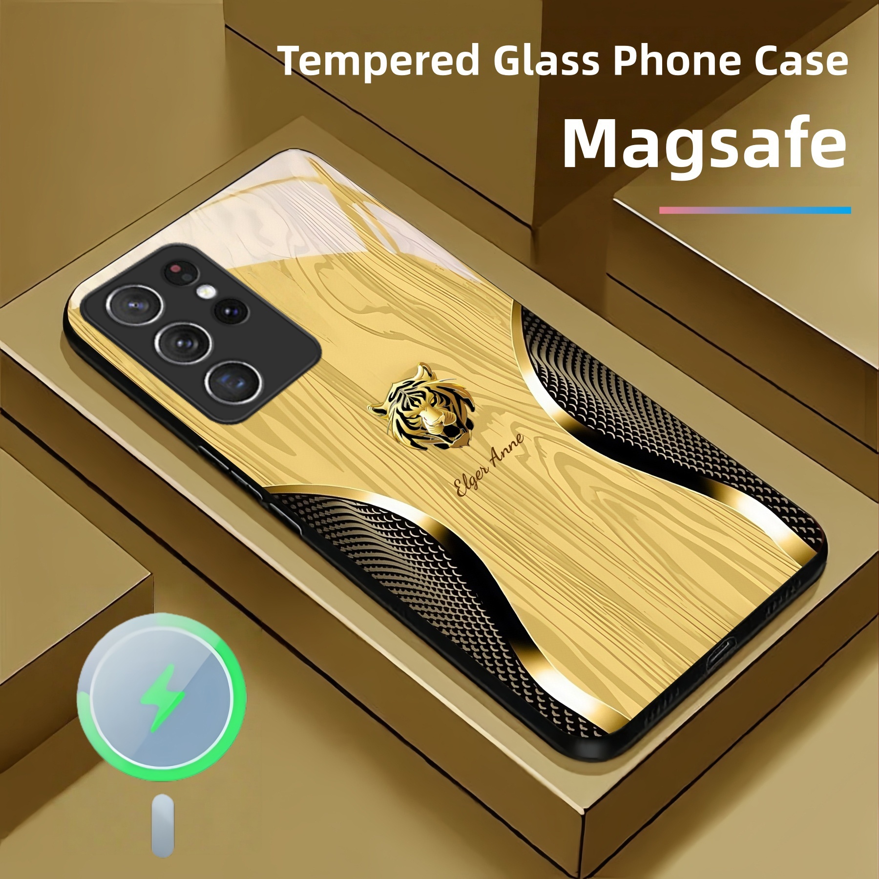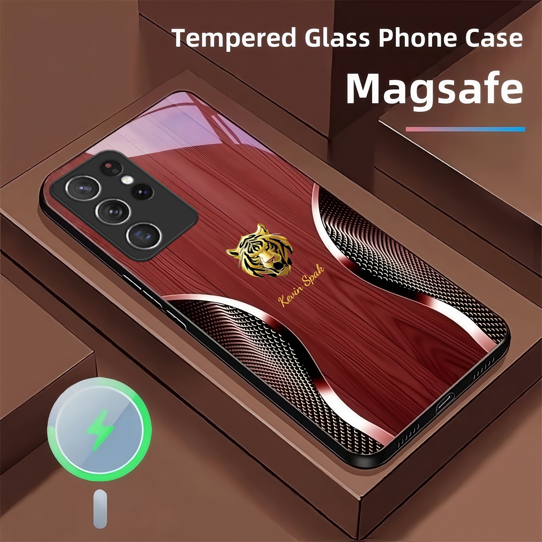 Personalized Wood Grain Tiger Magsafe Tempered Glass Case