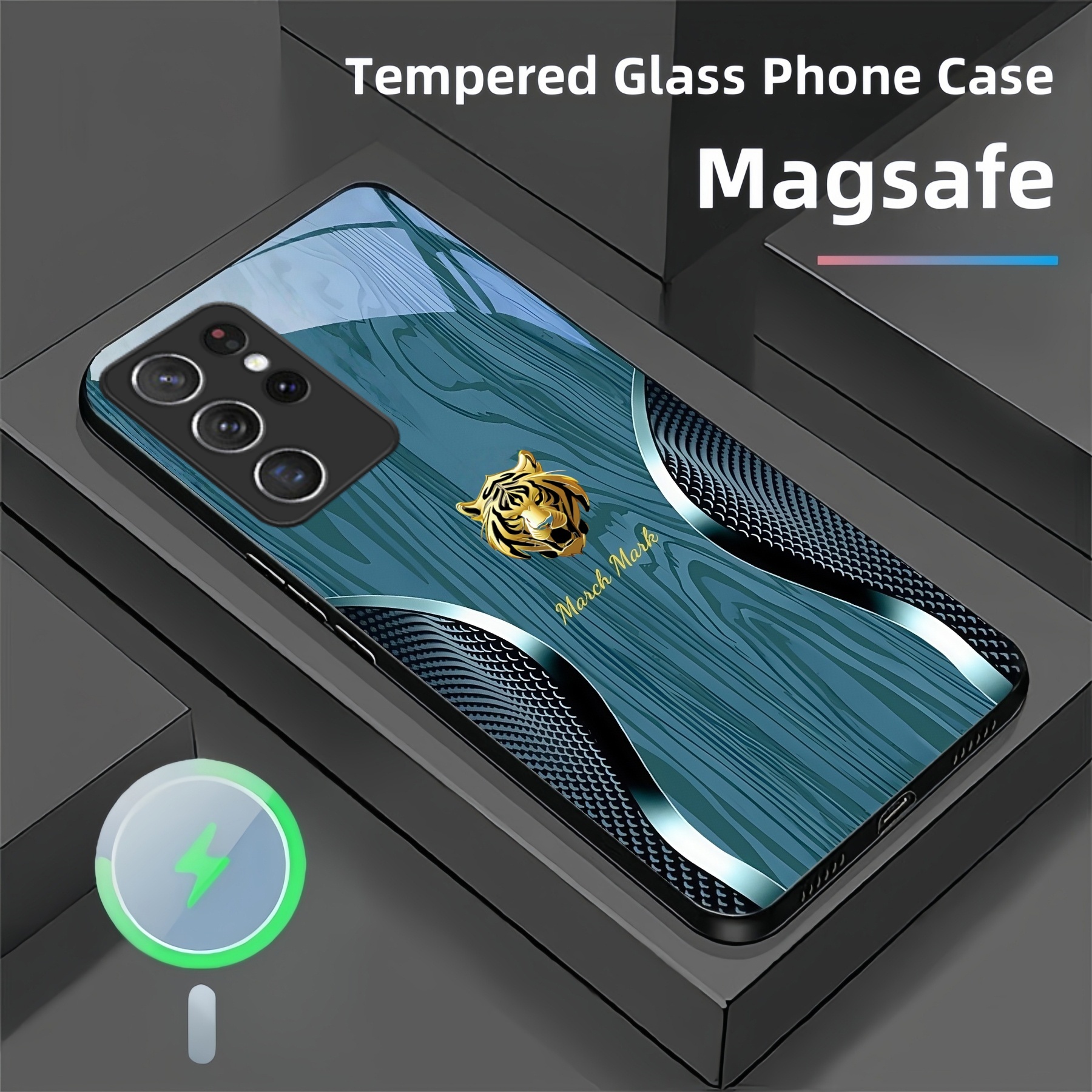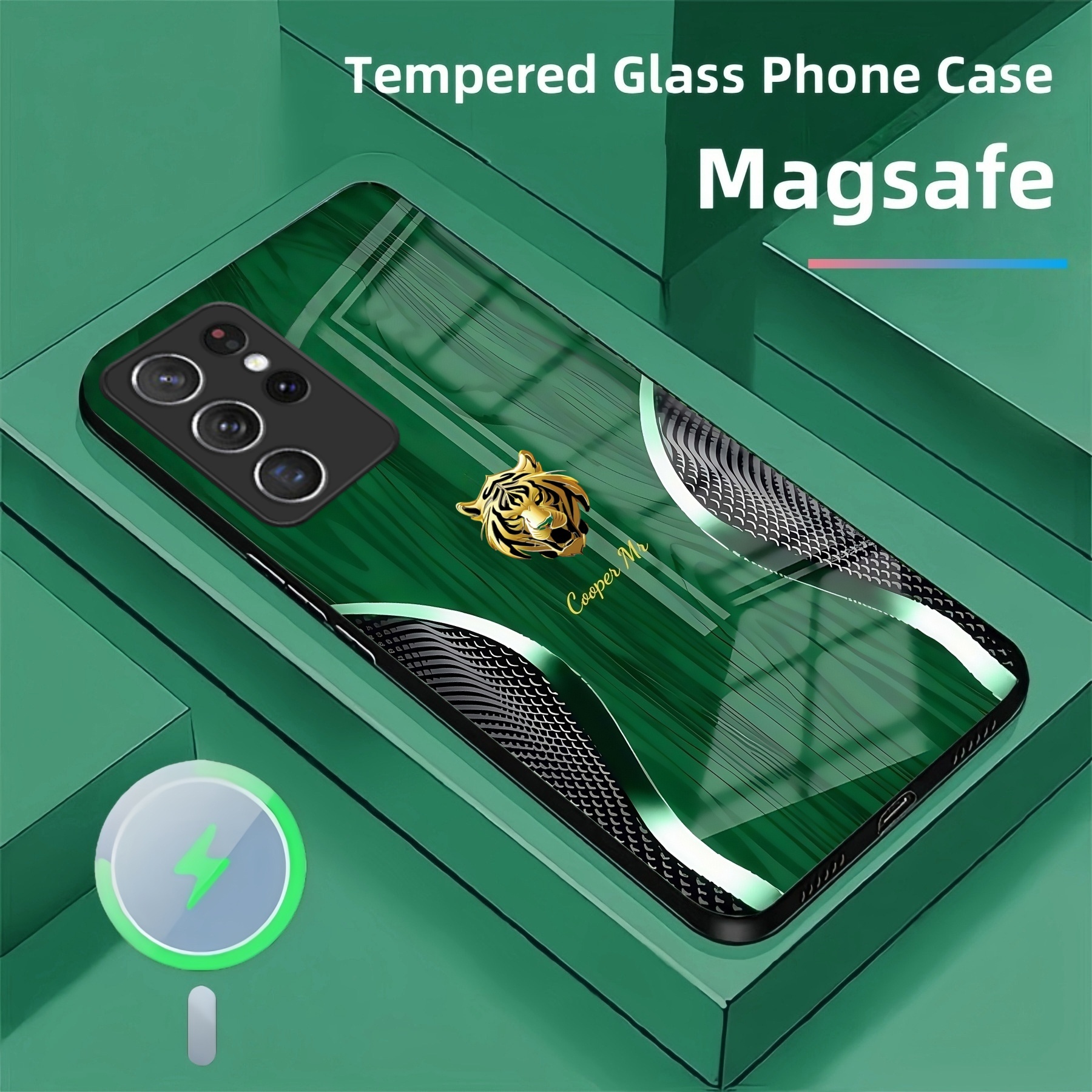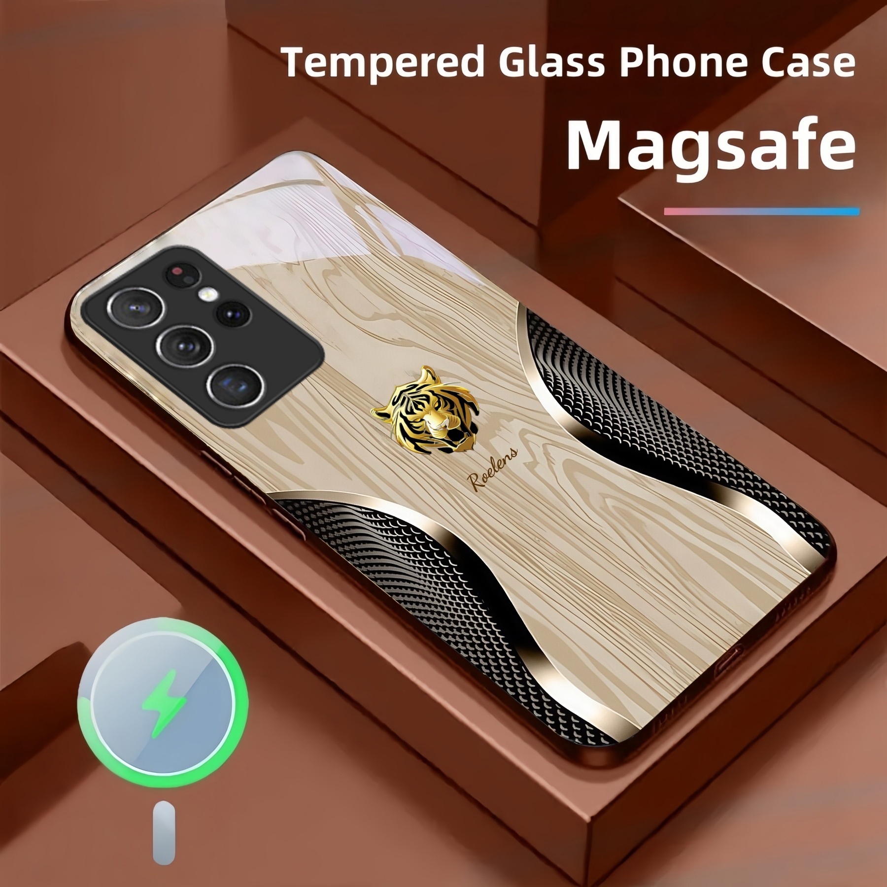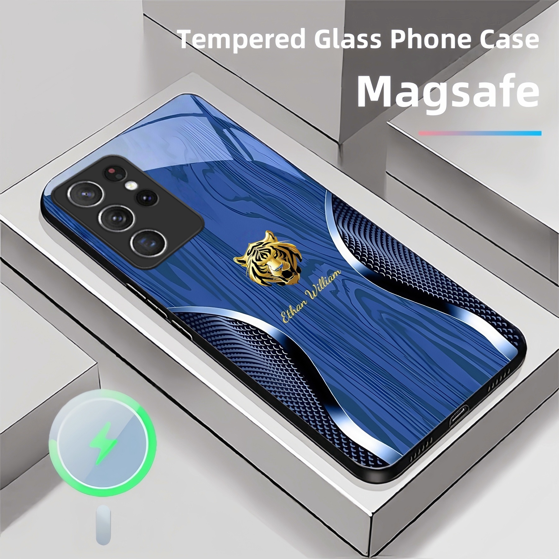 Personalized Wood Grain Tiger Magsafe Tempered Glass Case