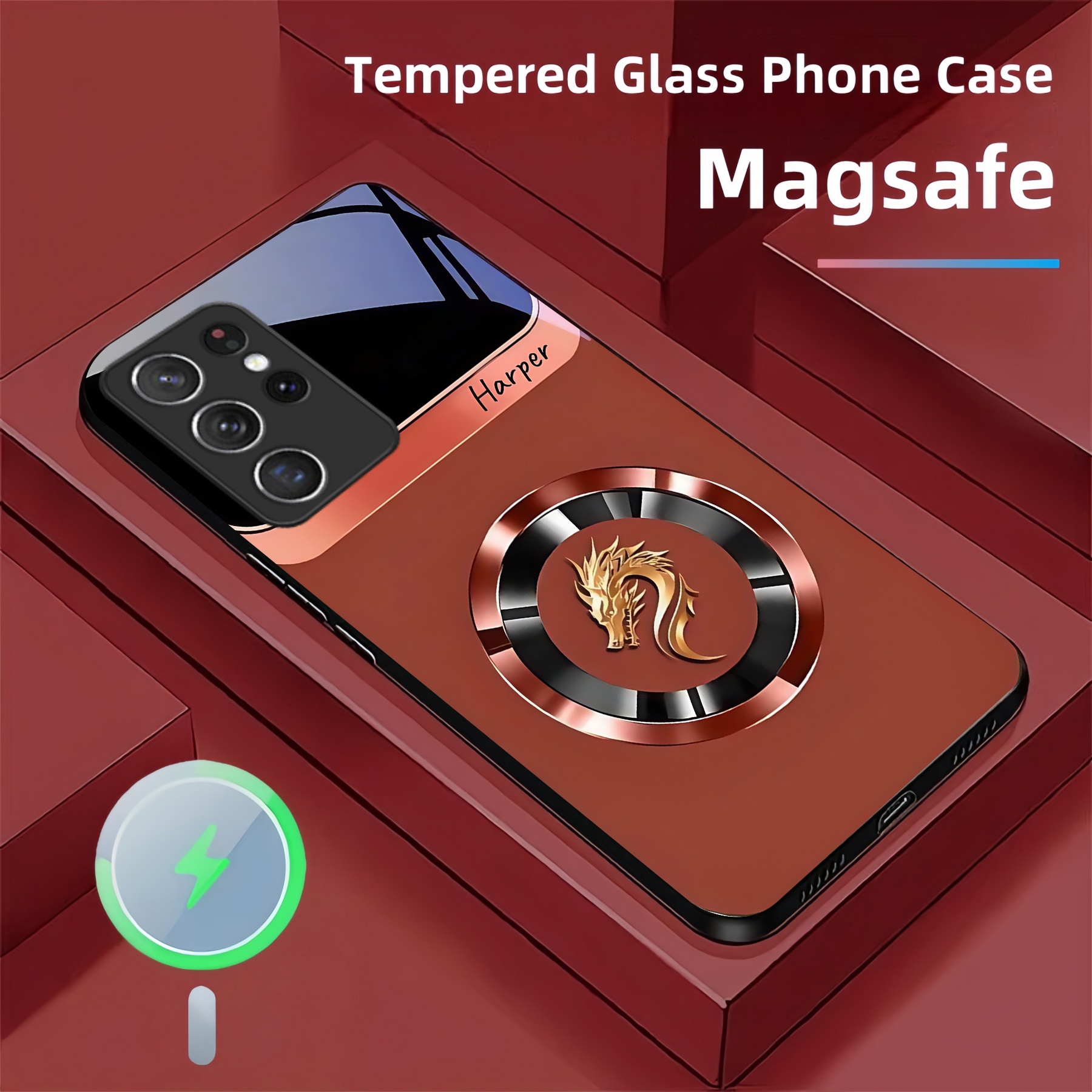 Personalized Dragon Pattern Magsafe Tempered Glass Case