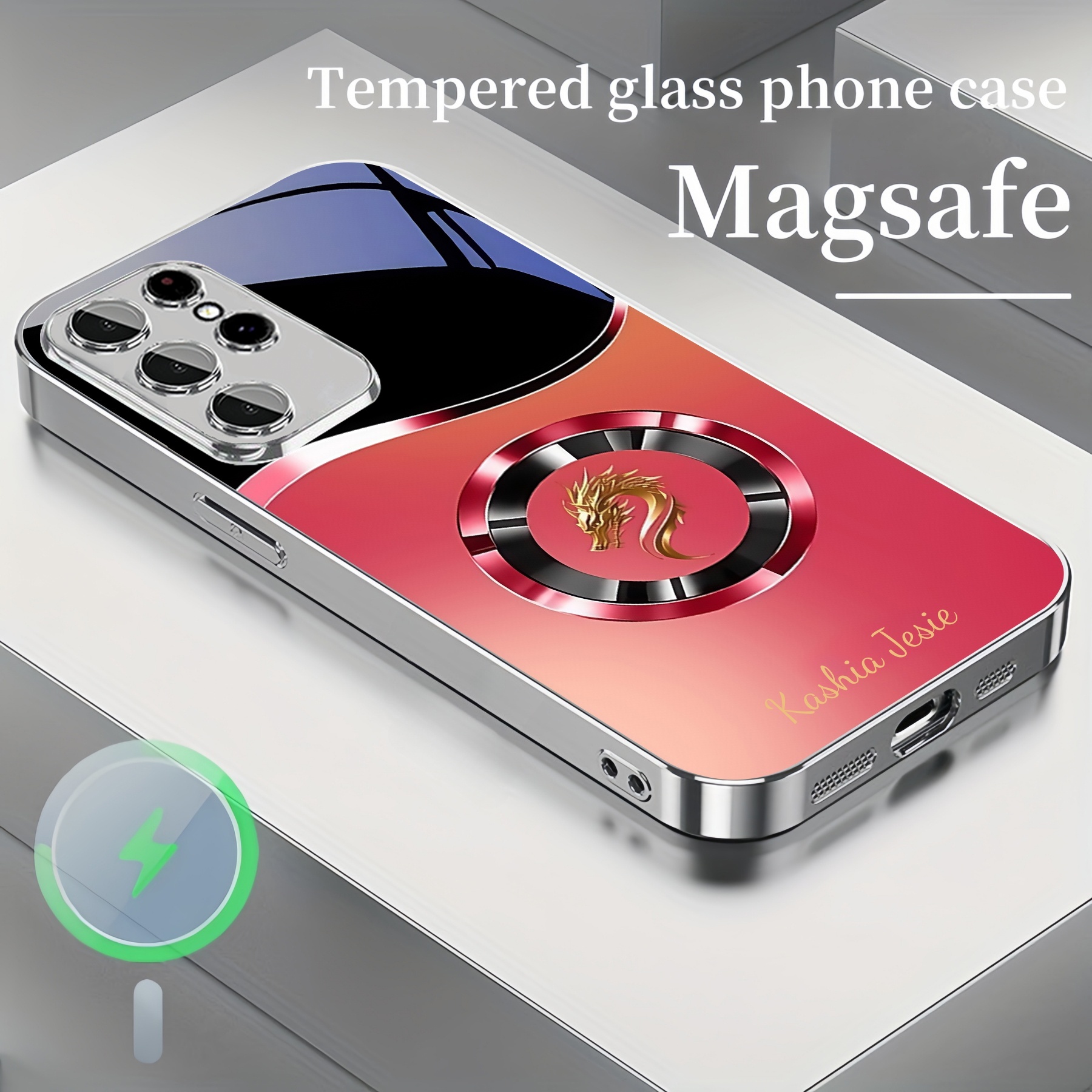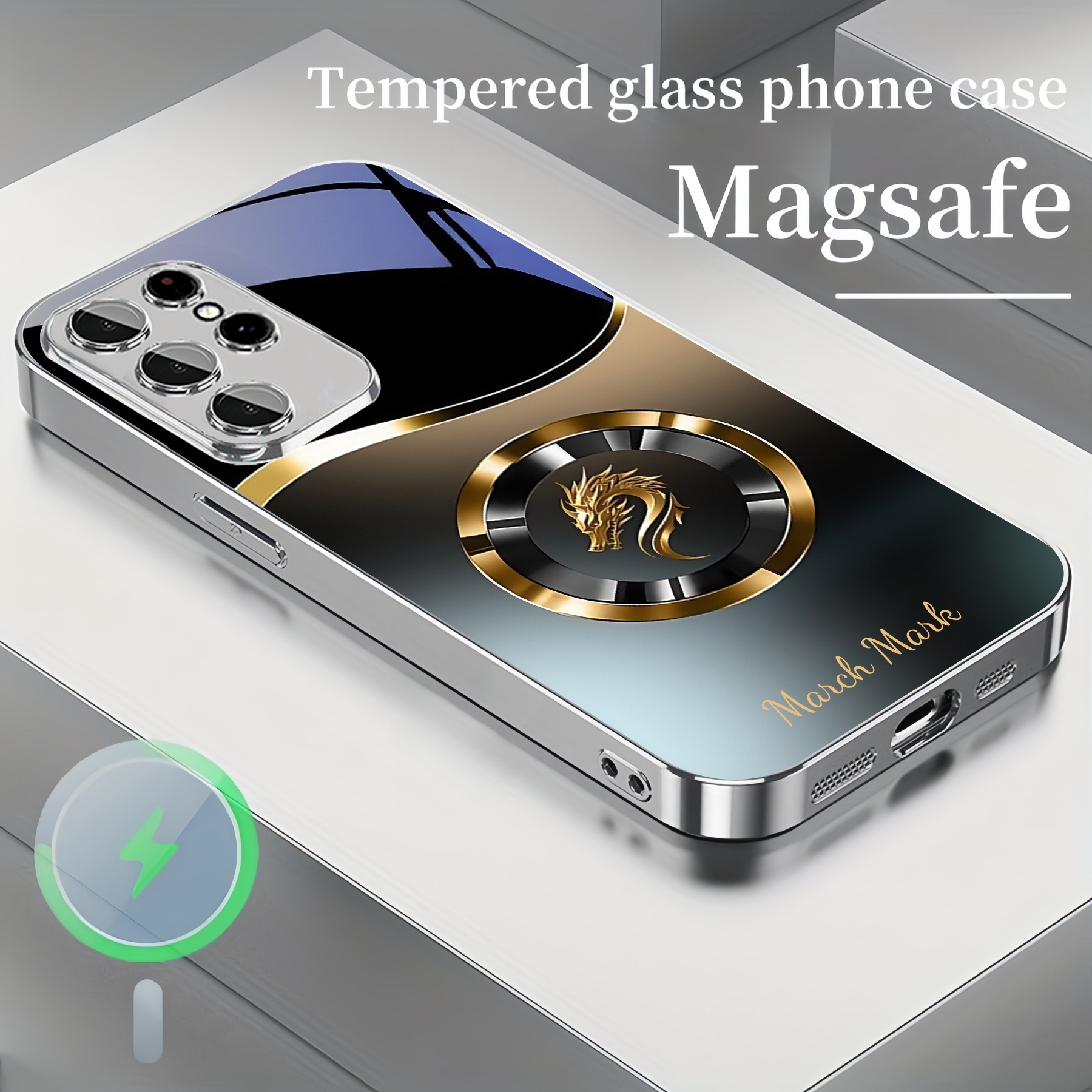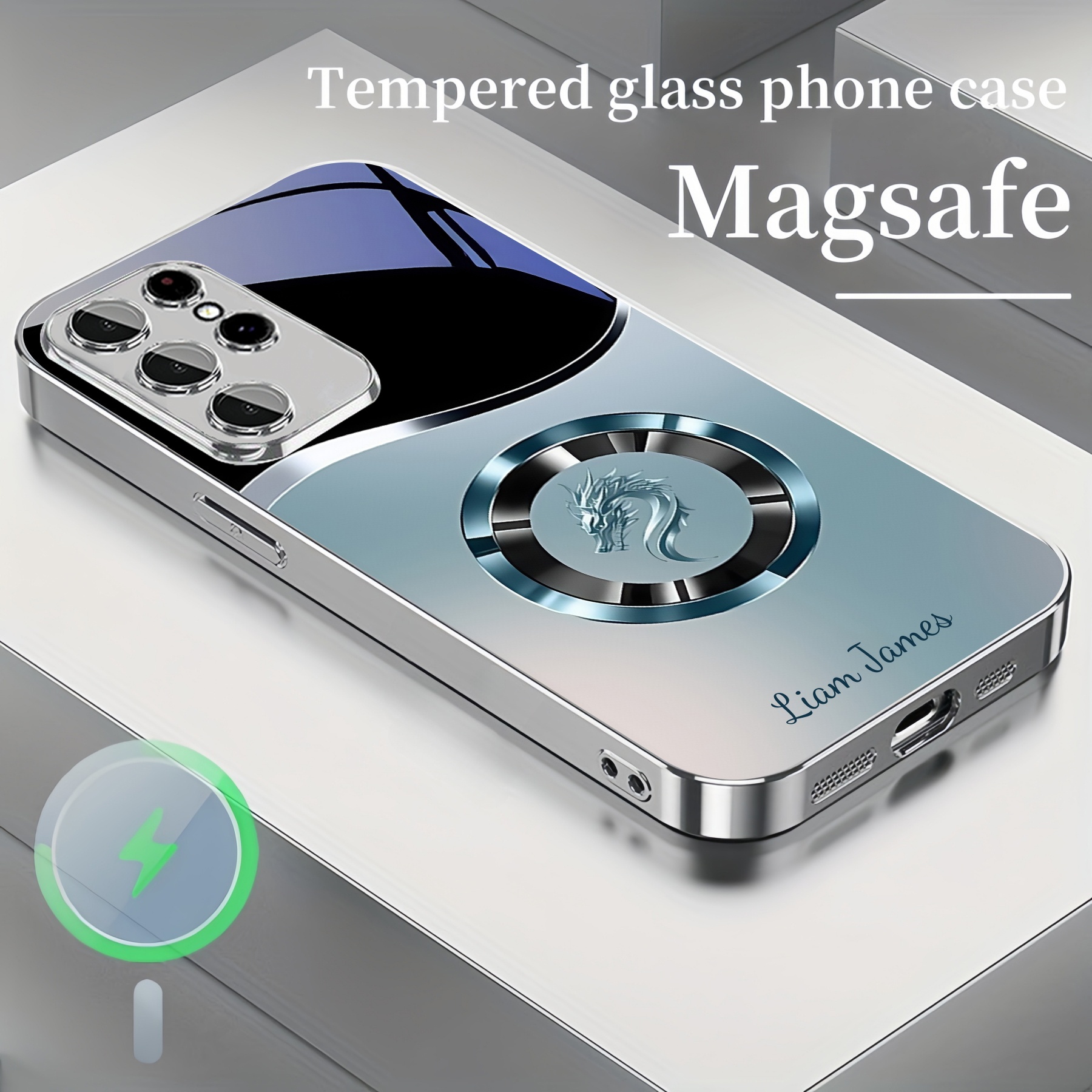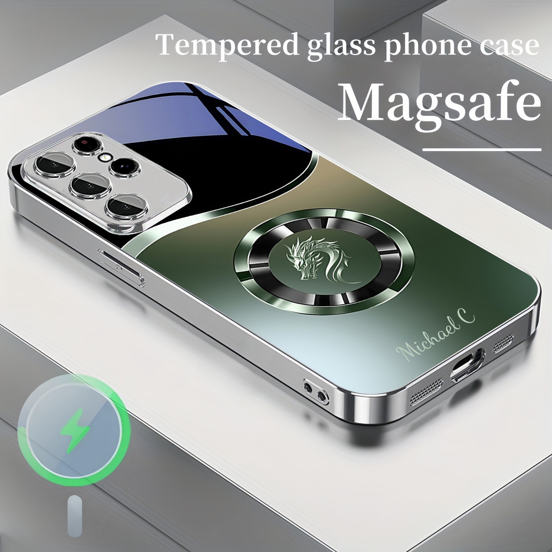 Personalized Gradient Dragon Pattern Magsafe Tempered Glass Plating Case