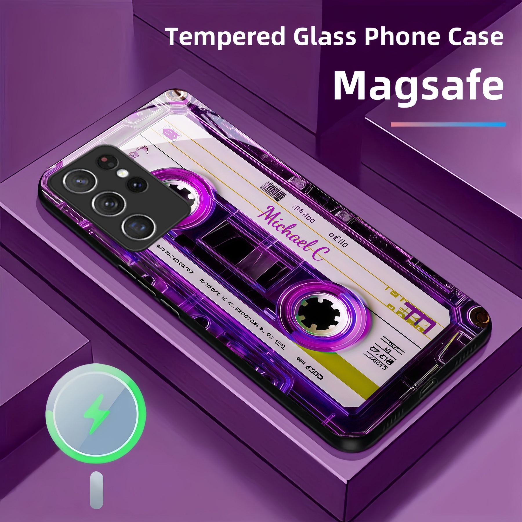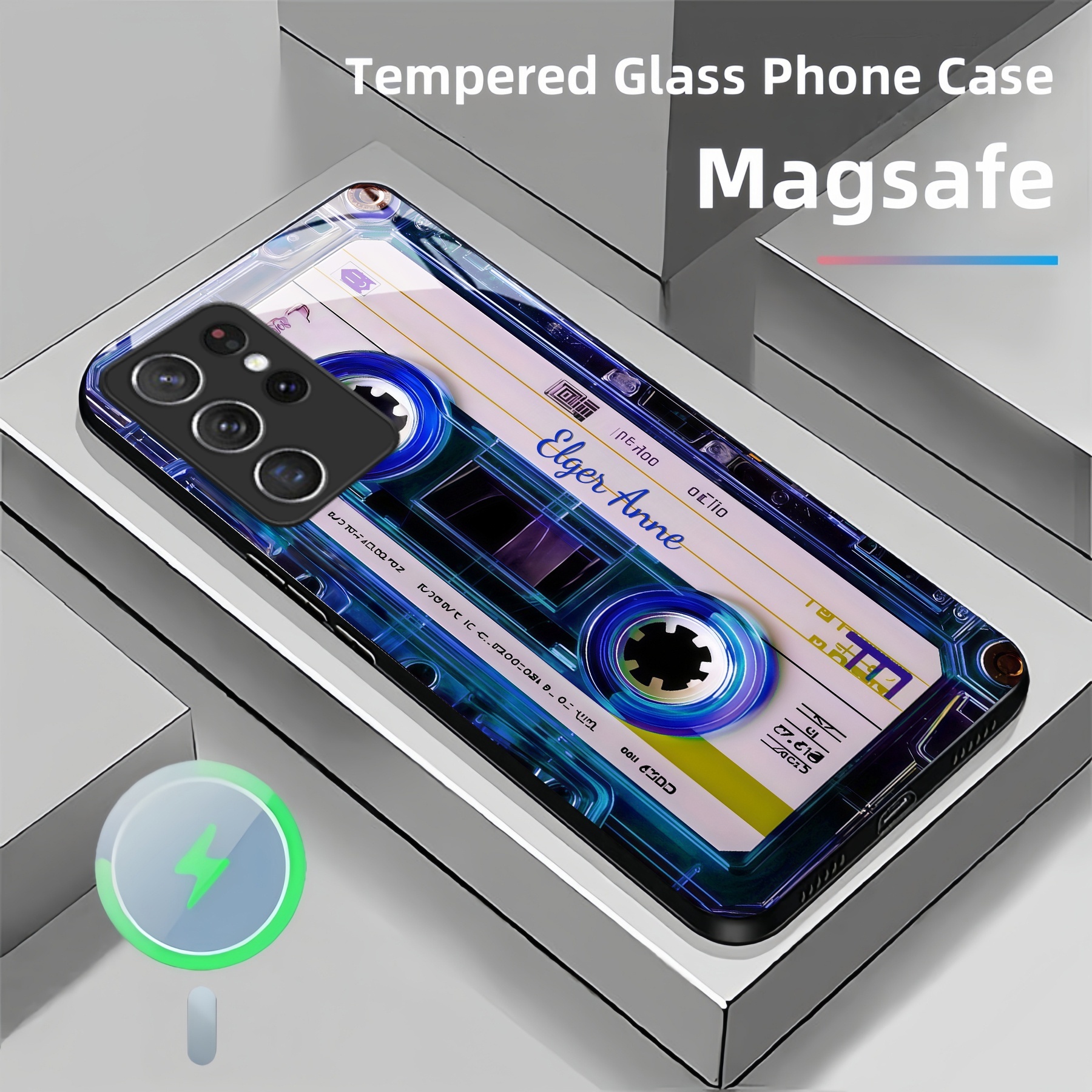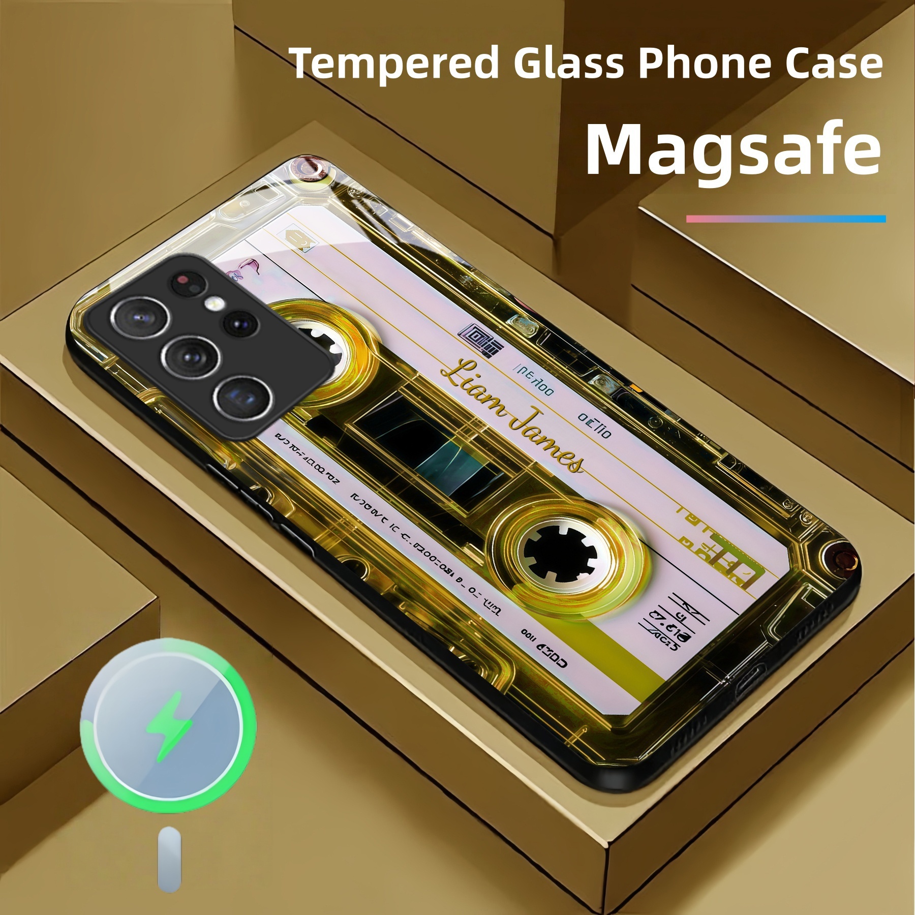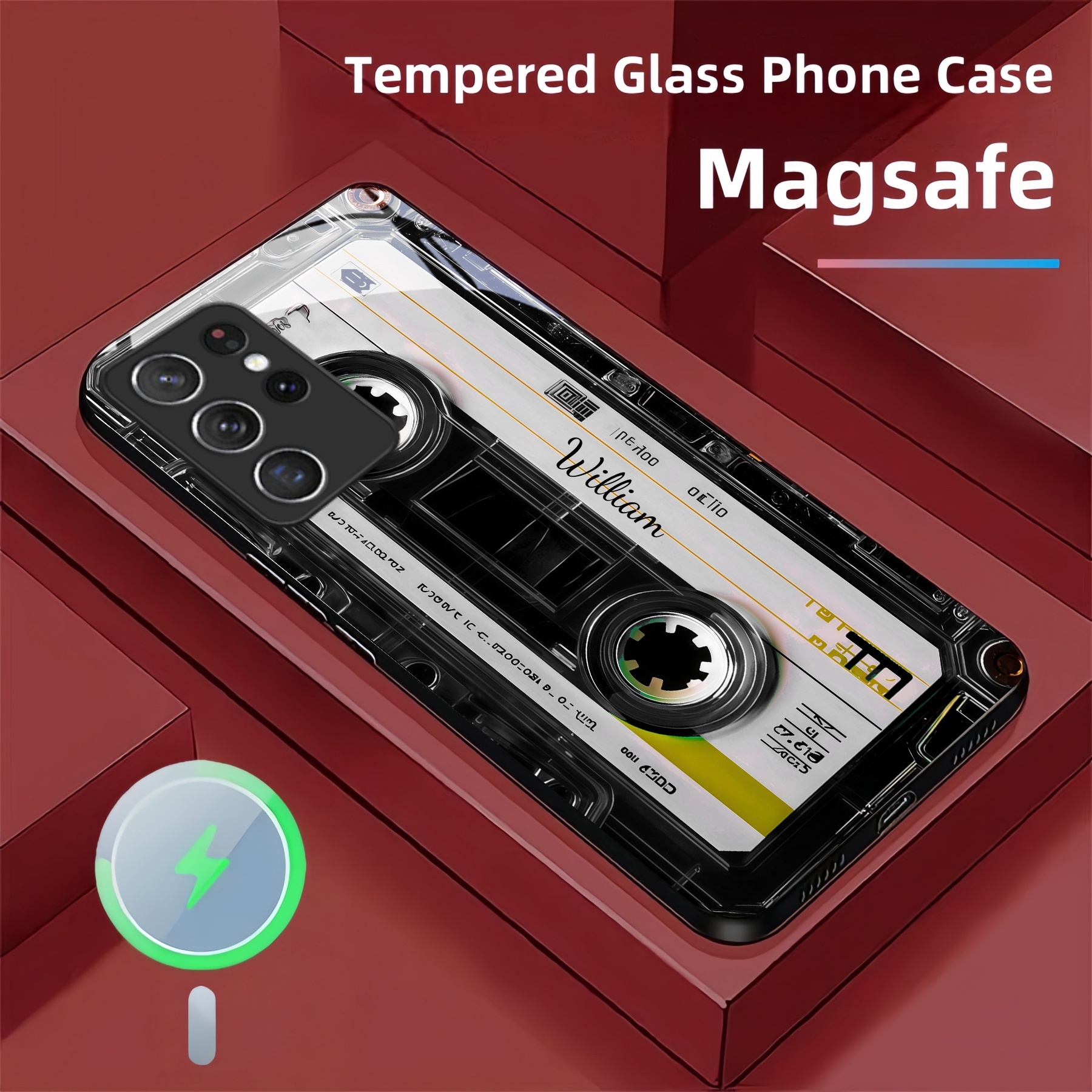 Personalized Retro Cassette Image Magsafe Tempered Glass Case