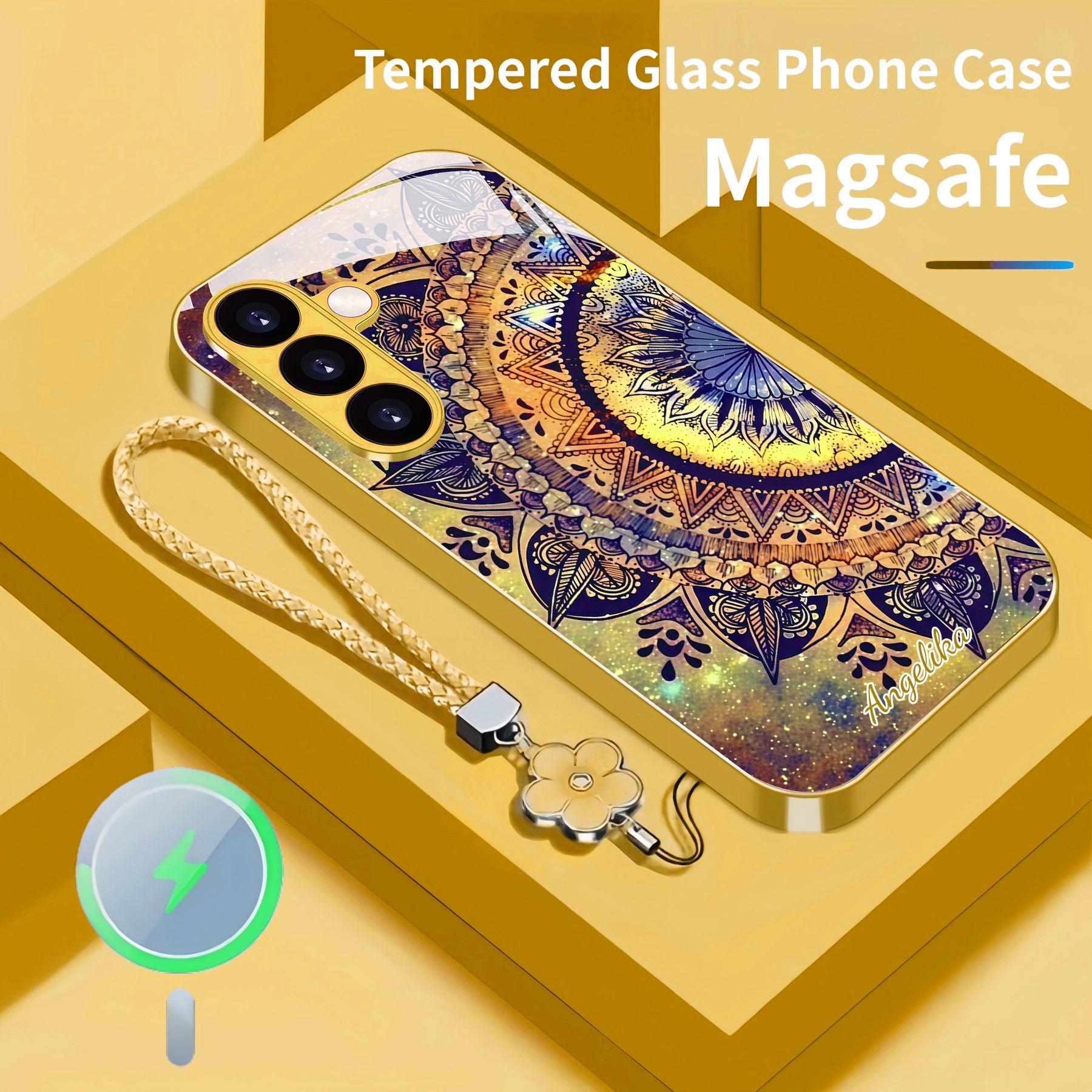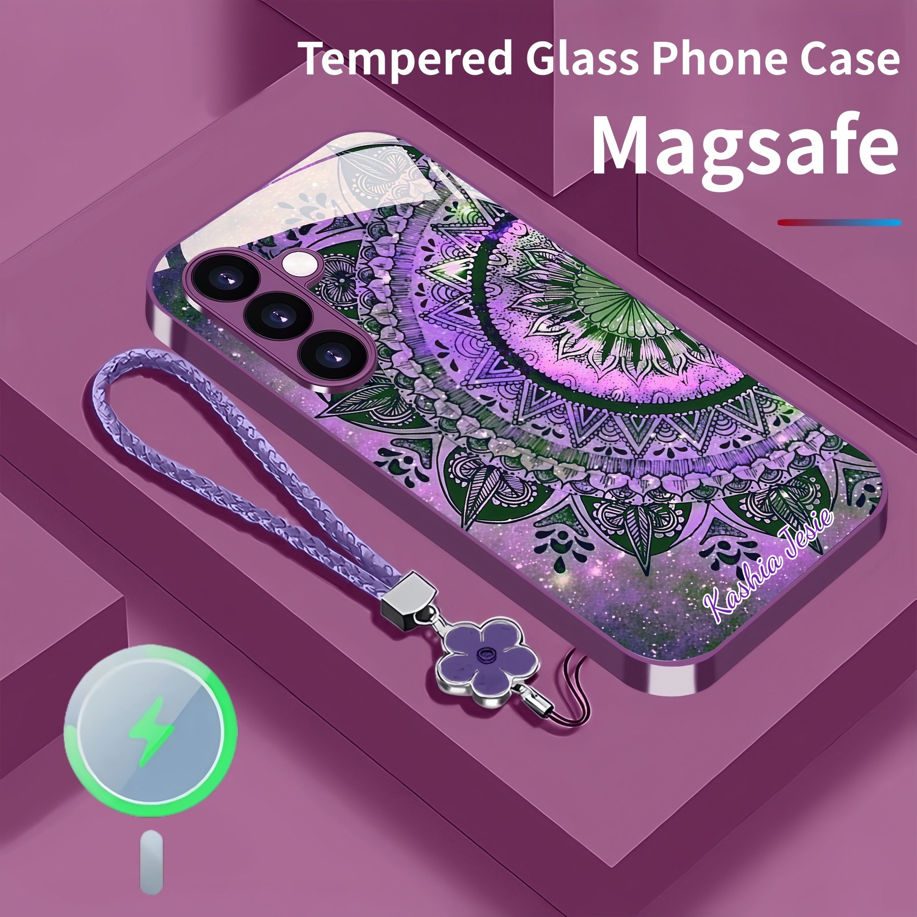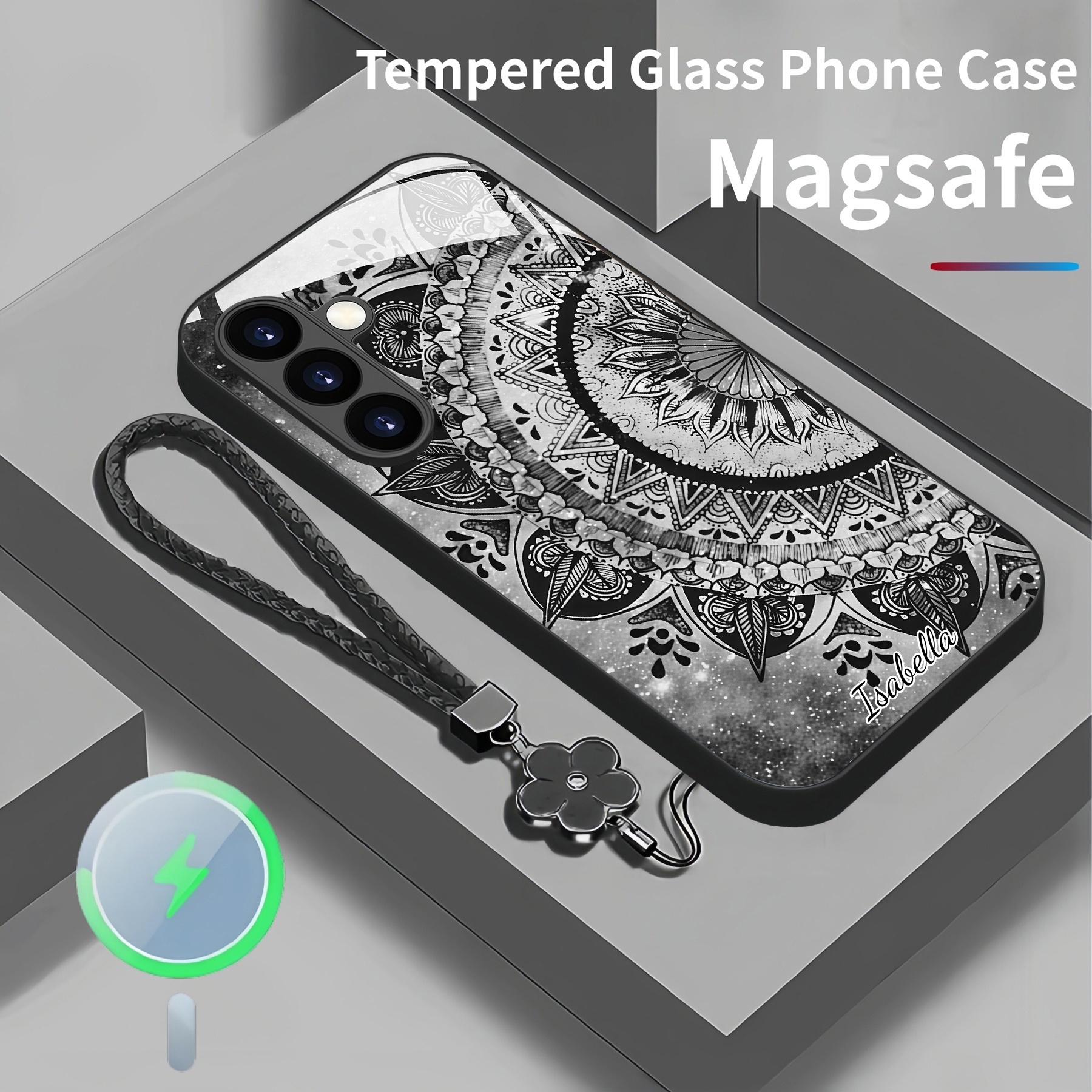 Personalized Retro Design Magsafe Tempered Glass Case with Lanyard