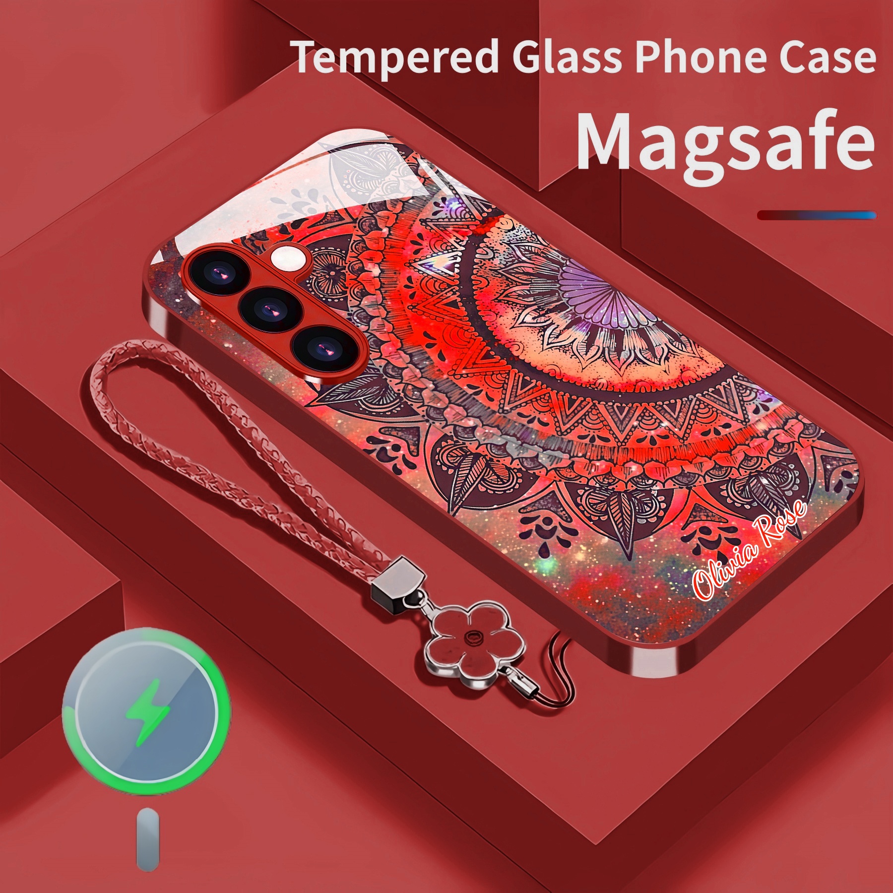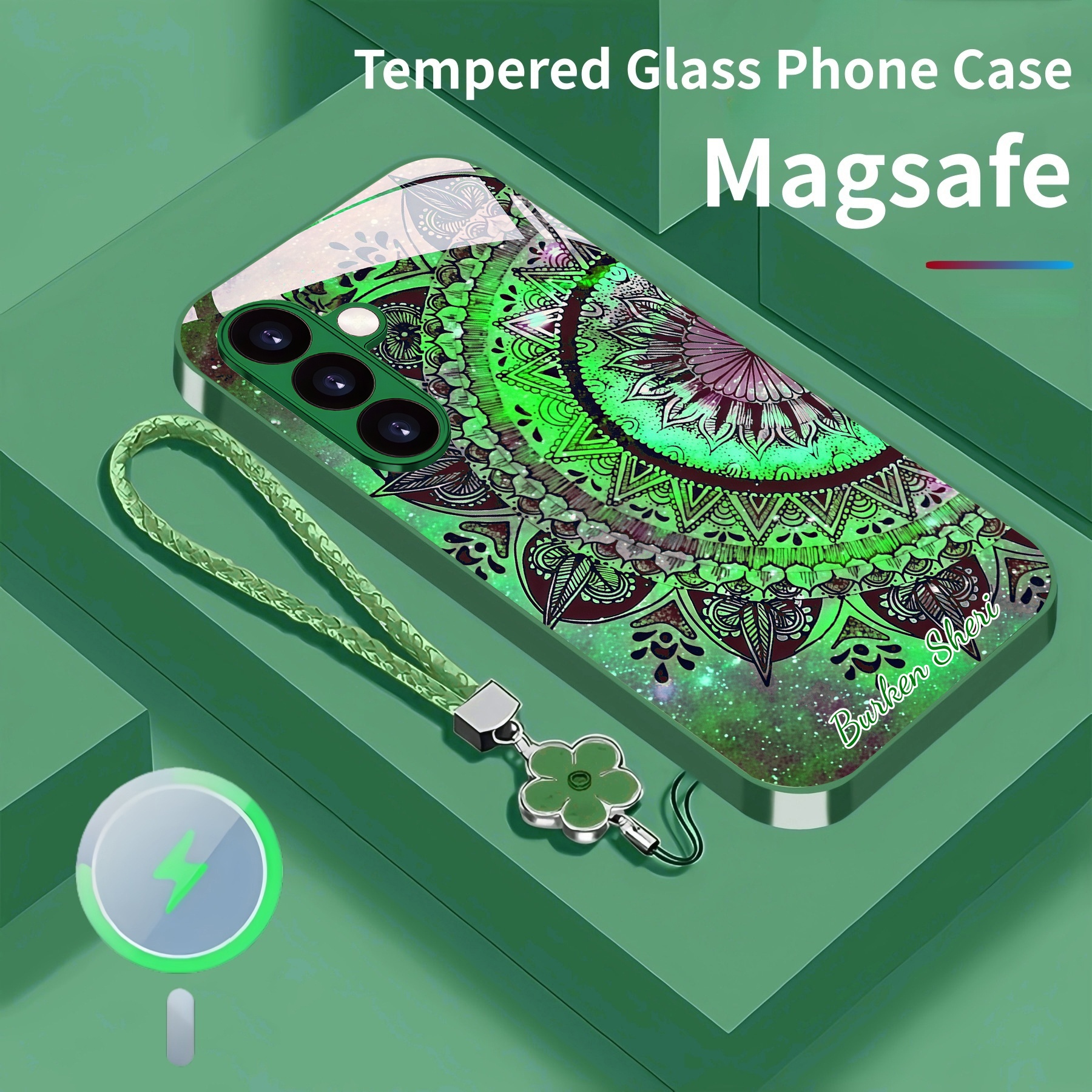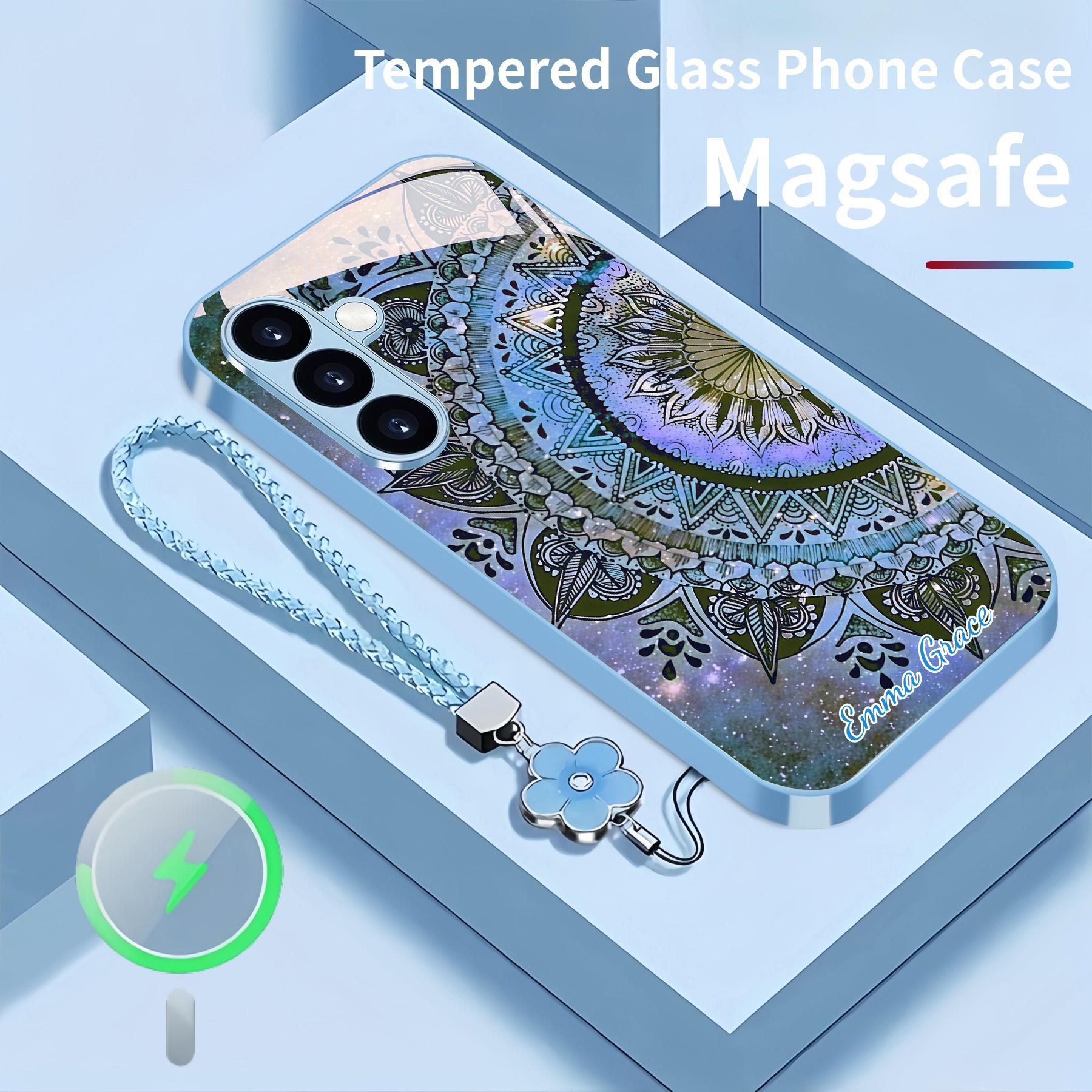 Personalized Retro Design Magsafe Tempered Glass Case with Lanyard